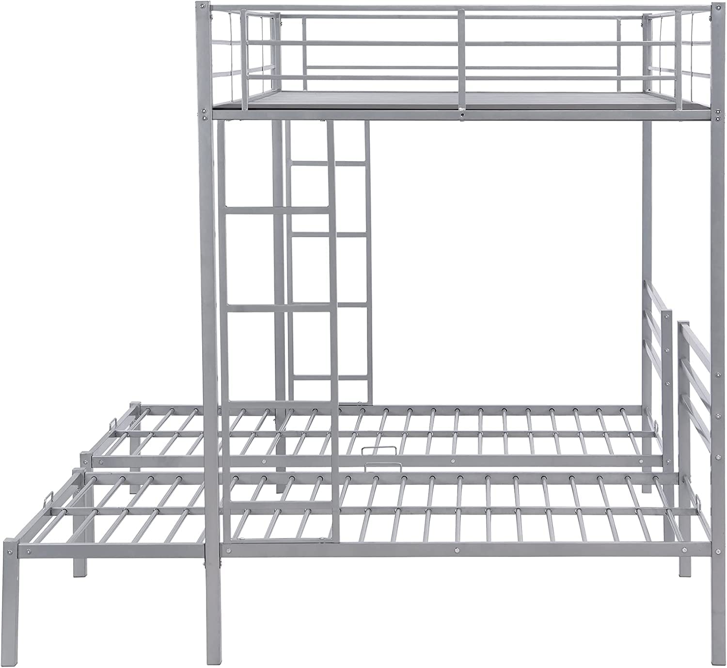 Harper & Bright Designs Metal Triple Bunk Beds Full Over Twin & Twin Bunk Bed with Upper Built-in Shelf, 3 Bed Bunk Beds with 2 Ladders for Kids, Teens, Adults, Silver