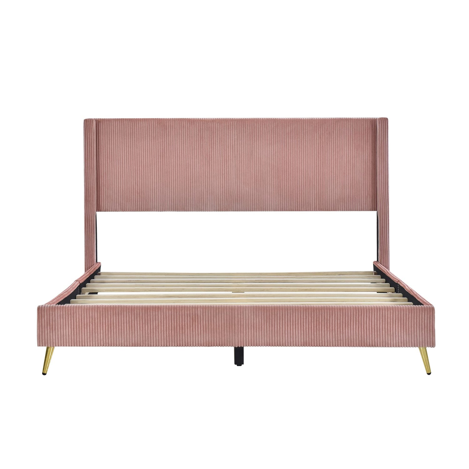 Harper & Bright Designs Pink Corduroy Queen Platform Bed Frame with Headboard and Strong Wooden Slats, Non-Slip and Noise-Free, Upholstered Queen Size Bed Frame for Bedroom, No Box Spring Needed
