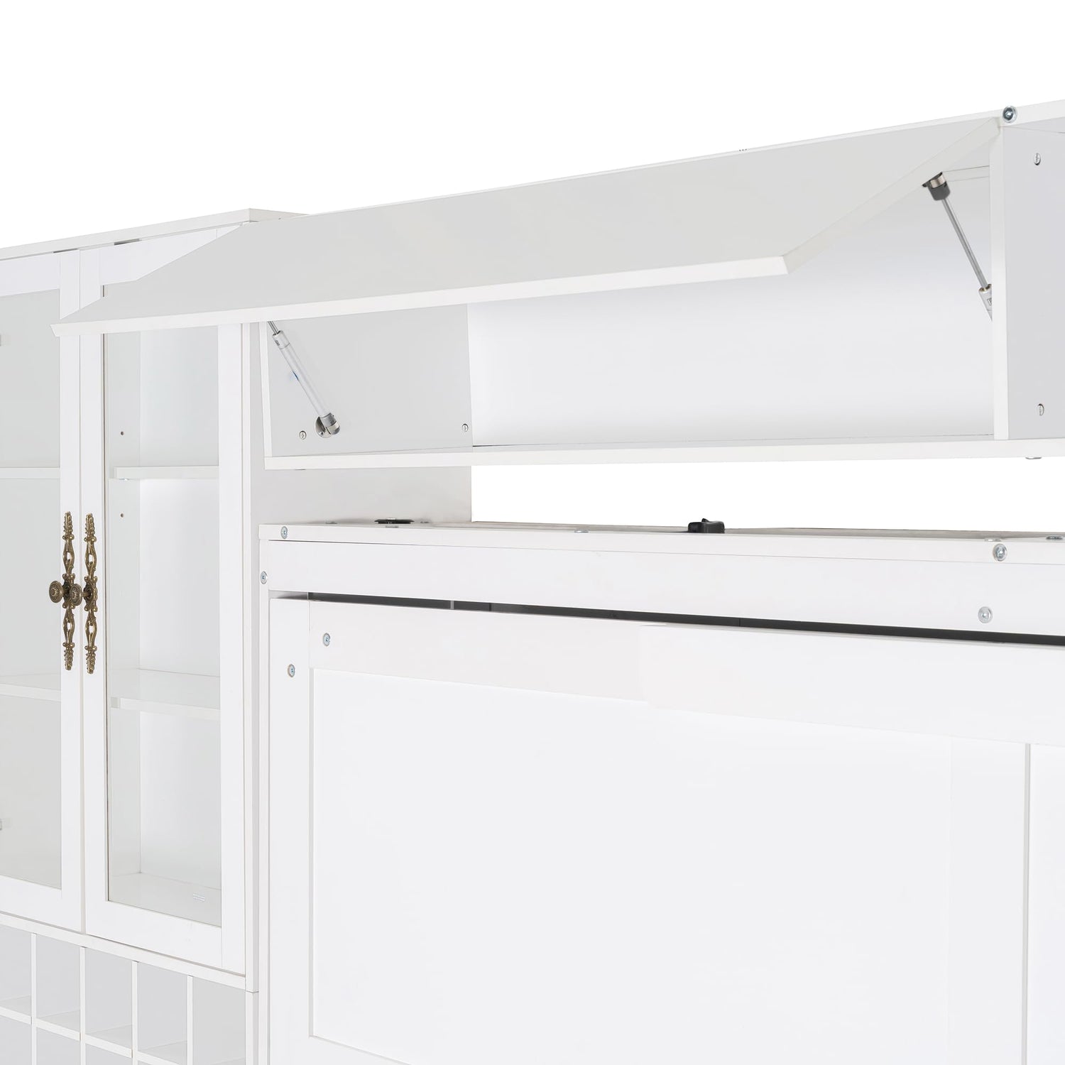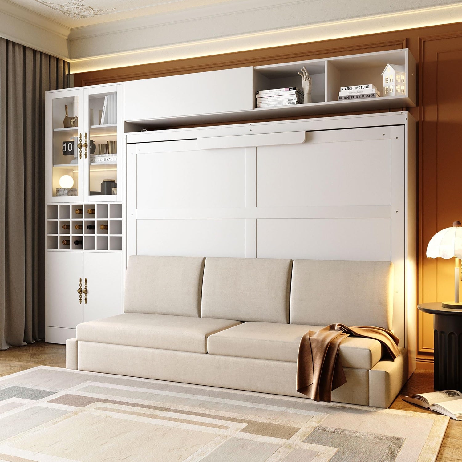 Harper & Bright Designs Queen Size Murphy Bed, Wall Bed with Sofa, Shelves USB & Light, White