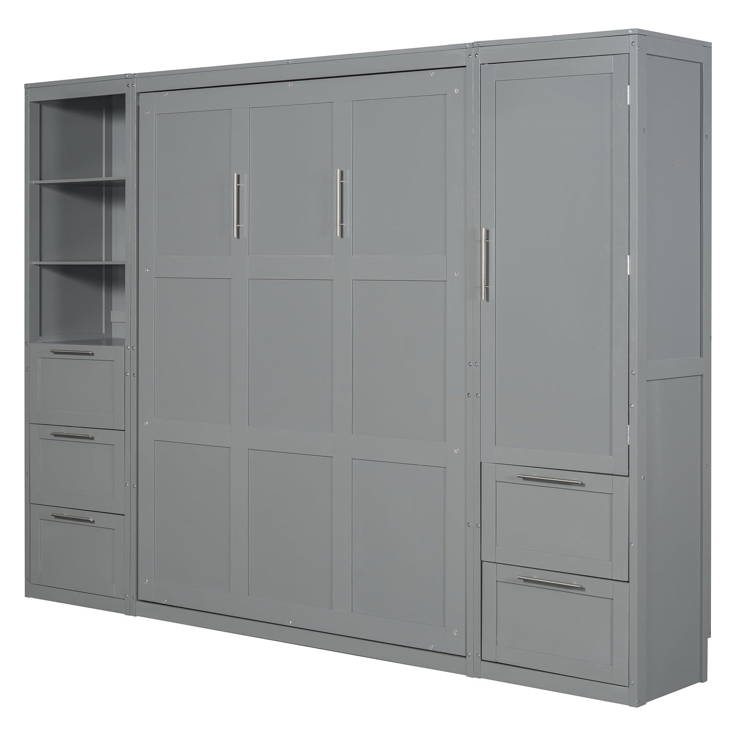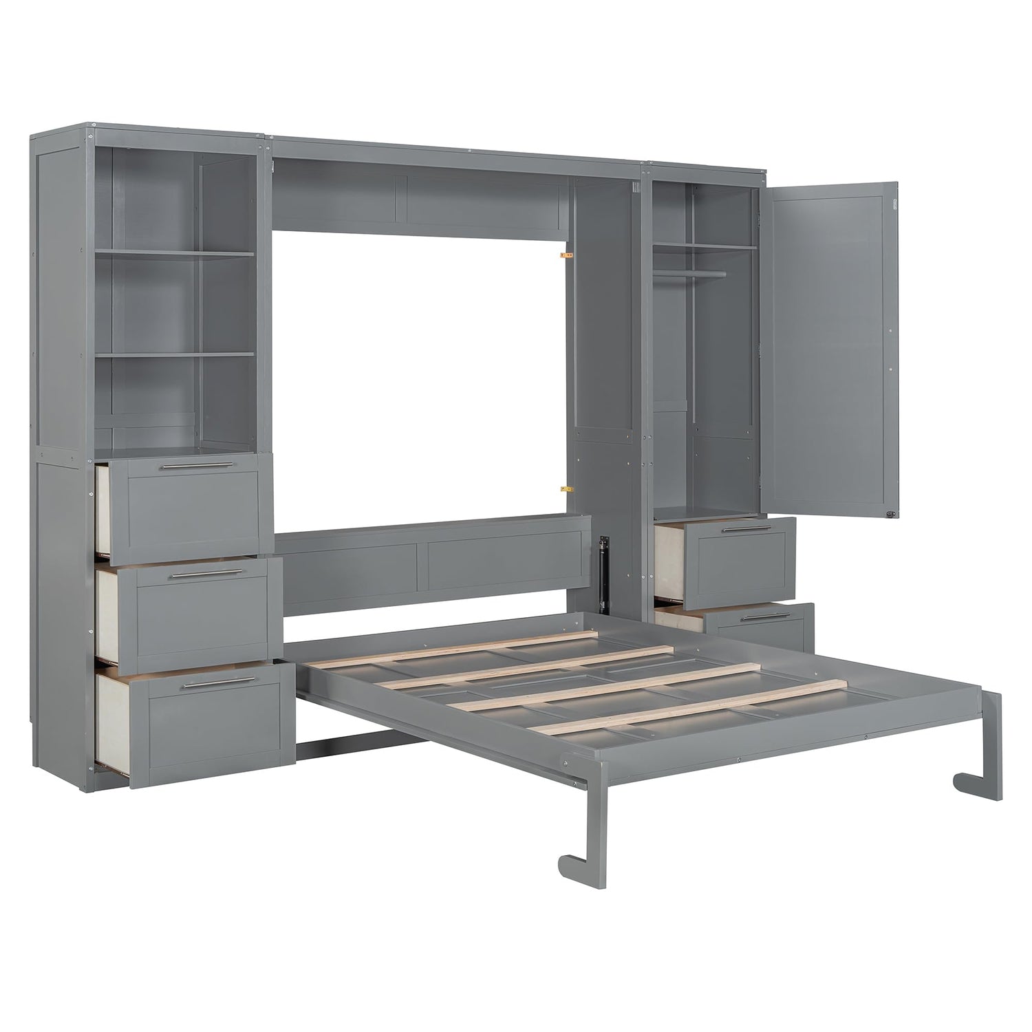 Harper & Bright Designs Queen Size Murphy Bed with Closet, Wall Bed with Drawers and Shelves, Gray