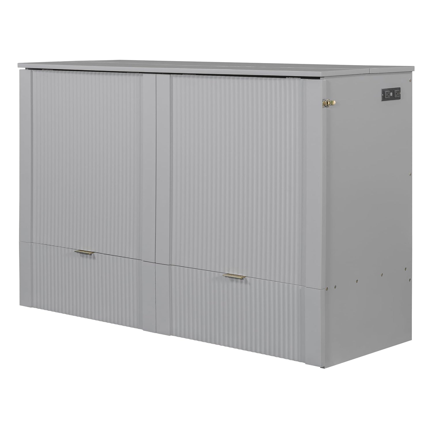 - [Murphy Bed with USB Ports] This Murphy bed seamlessly transforms into a cabinet, effortlessly opening up floor space in any room. Ideal for multi-use spaces like guest rooms, home offices, or home gyms, it features convenient sockets and USB ports on the right side, along with two drawers for added storage when the bed is in cabinet mode.