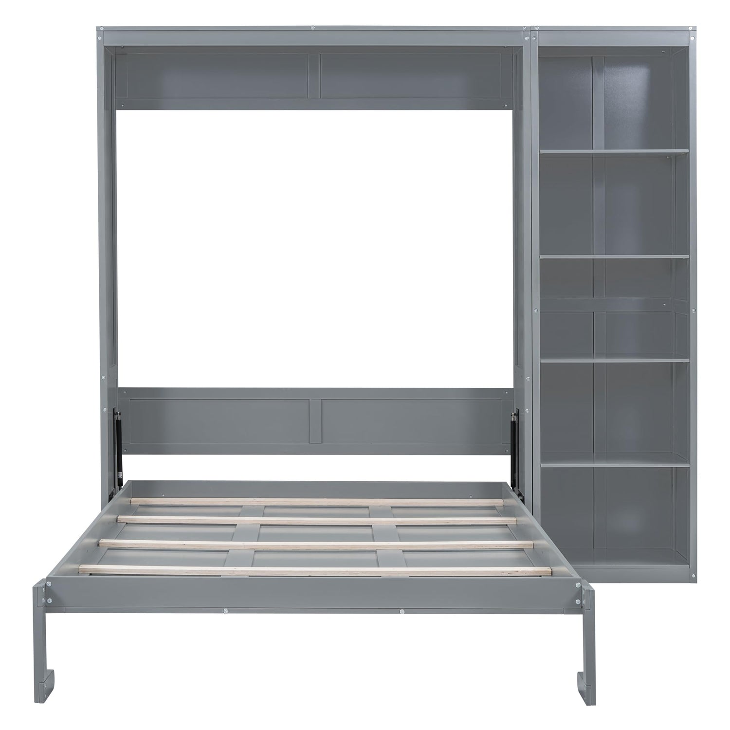 Harper & Bright Designs Queen Size Murphy Bed, Wooden Wall Bed with Shelves, Gray