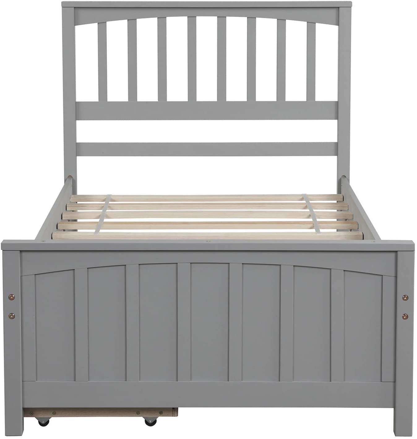 Transform your child's bedroom with the Harper & Bright Designs Light Grey Twin Bed Frame with Storage Drawers. This stylish and functional bed frame is crafted from durable solid pinewood, ensuring it stands the test of time, while its light grey finish adds a modern touch to any decor.