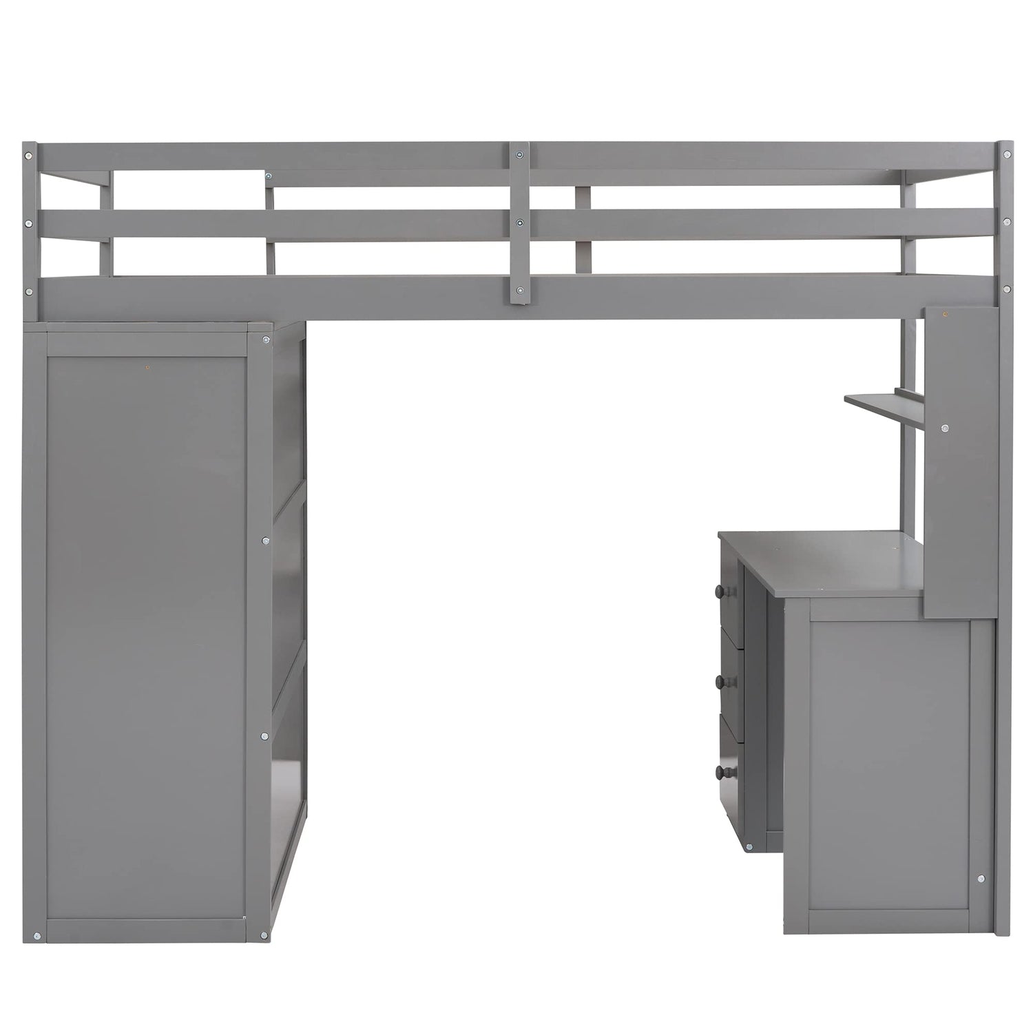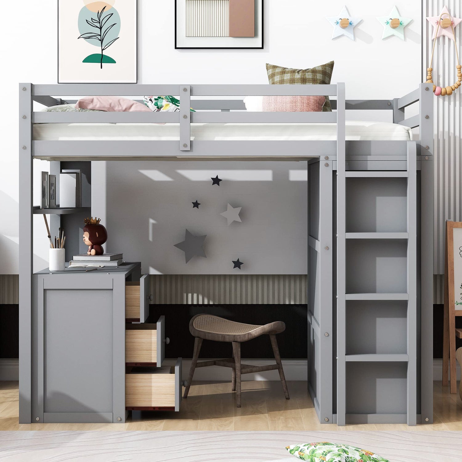 Harper & Bright Designs Twin Loft Bed with Desk and Wardrobe, Solid Wood Loft Bed Frame with Storage Drawers, for Kids Teens Adults (Twin Size, Gray)