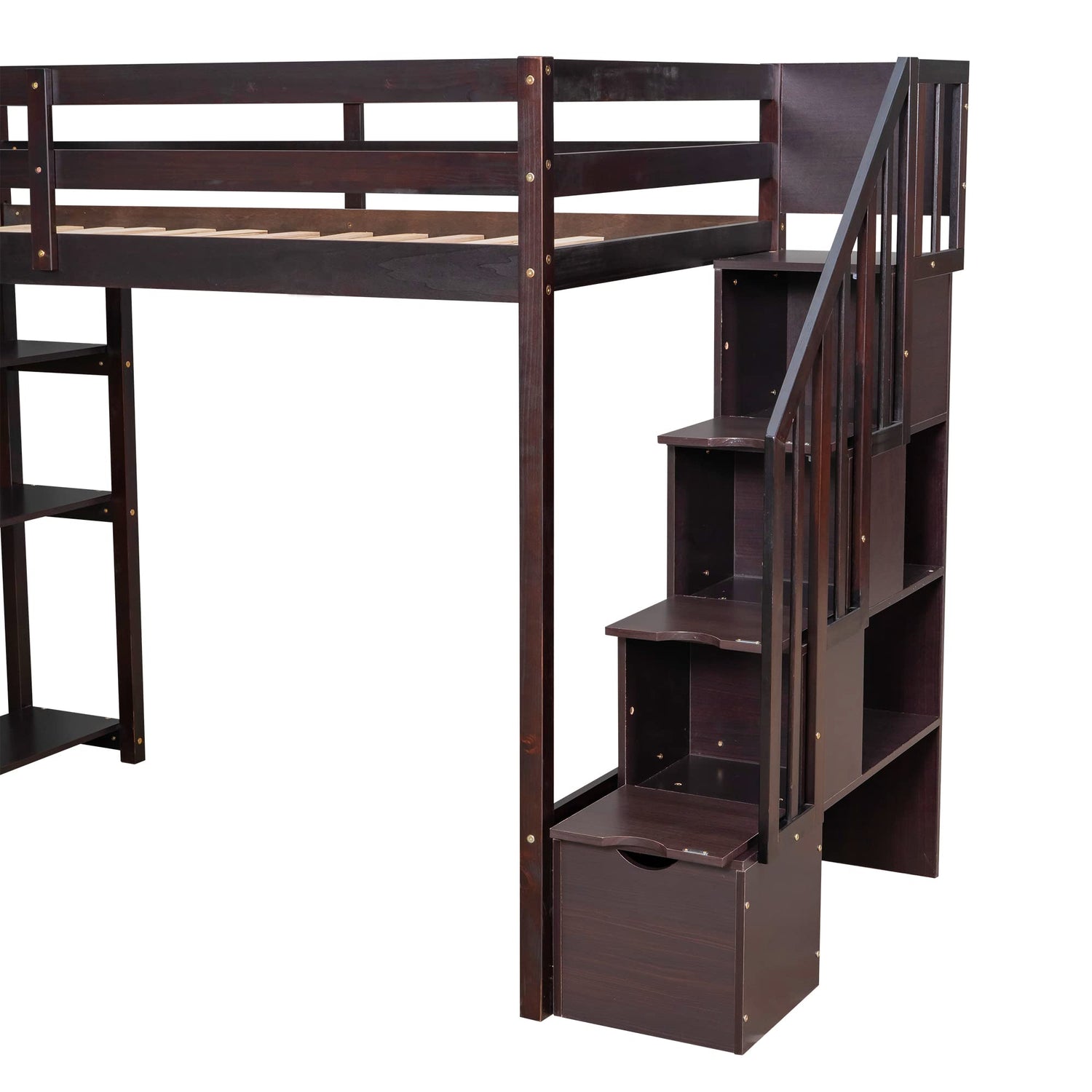Twin Loft Bed with Stairs and Storage by Harper & Bright Designs - Solid Wood Frame in Espresso