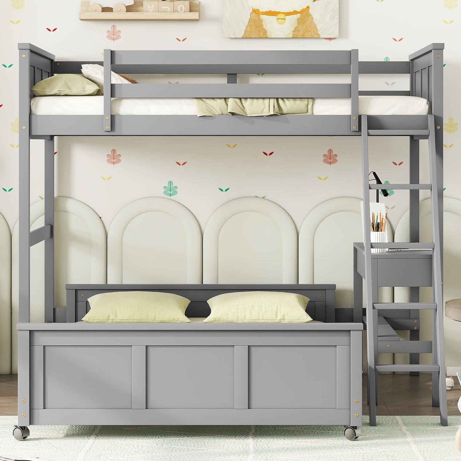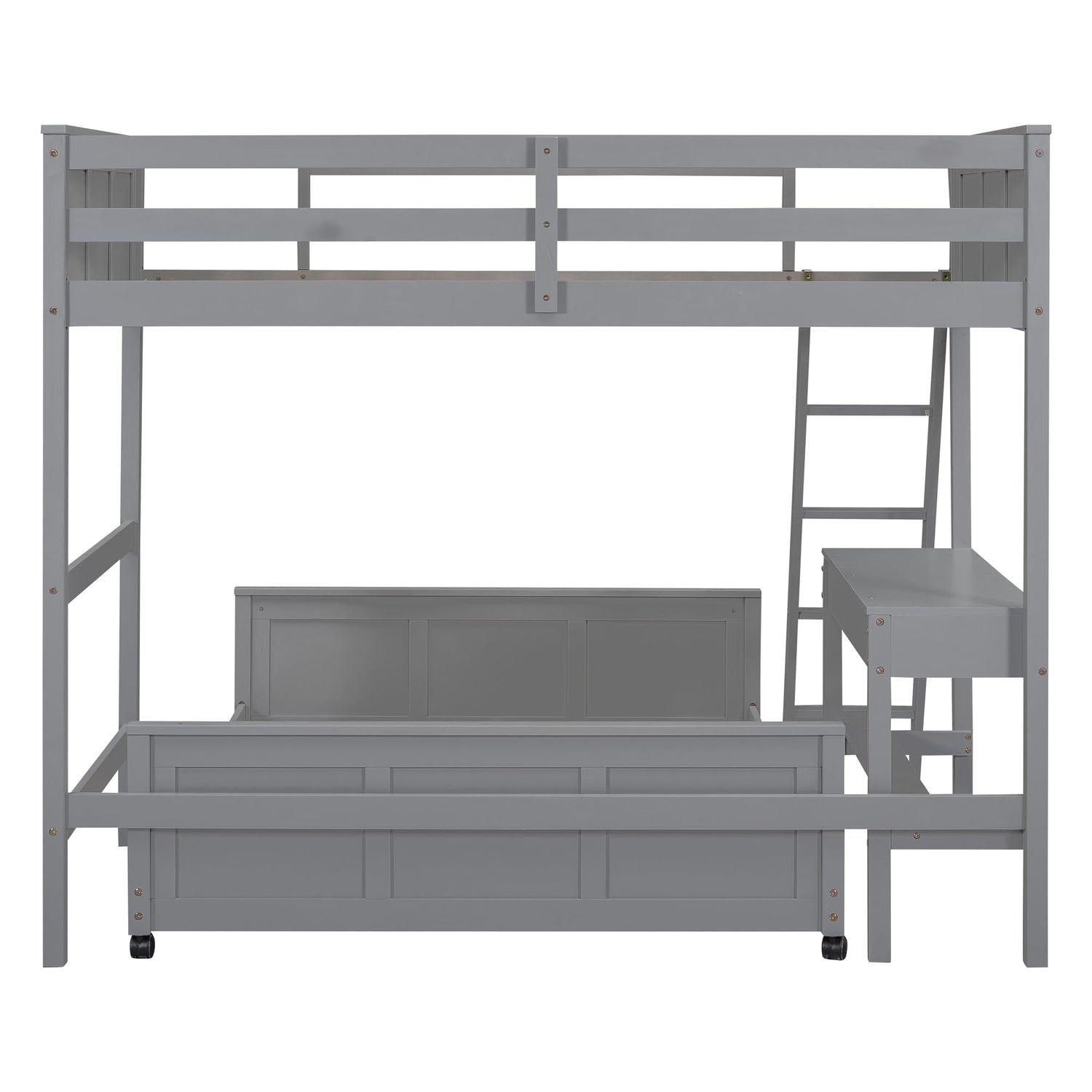 Harper & Bright Designs Twin Over Full Bunk Bed with Desk and Storage Drawers in Grey