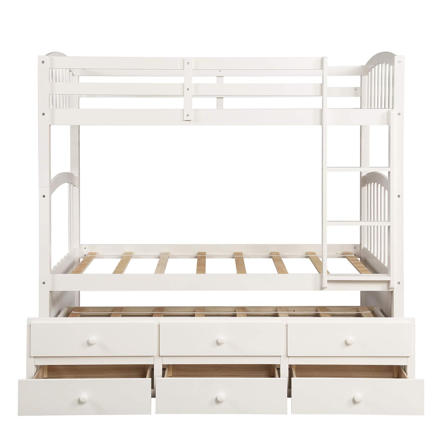 Harper & Bright Designs Twin Over Twin Bunk Bed with Trundle and Storage, Solid Wood Bunk Bed Frame with 3 Drawers for Kids, Teens, Adults (White)