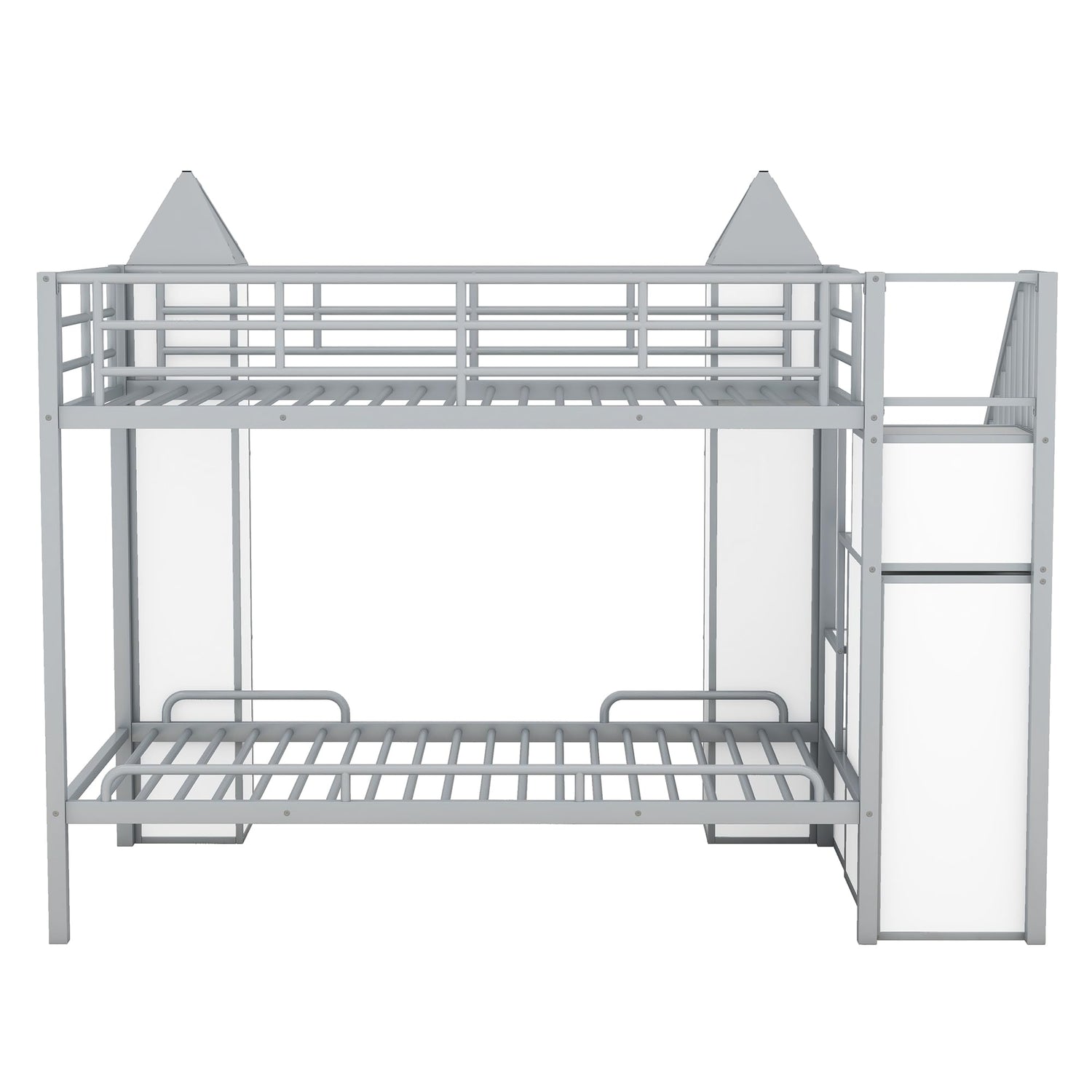 Harper & Bright Designs Twin Over Twin Metal Bunk Bed with Stairs and Storage Wardrobe, Castle-Shaped Bunk Bed Heavy-Duty Steel Frame, Noise Free,for Kids Teens Adults, Gray+White