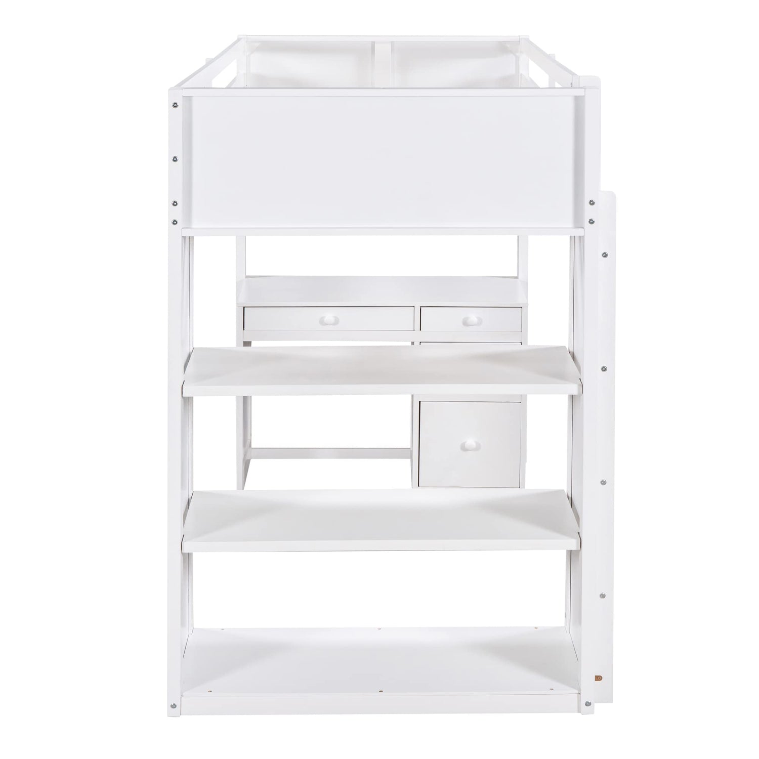 Harper & Bright Designs Twin Size Loft Bed with Desk and Bookshelf, Solid Wood Loft Bed Frame with Storage Drawers, 14.6" Height Full Length guardrail, for Kids Teens Adults - White