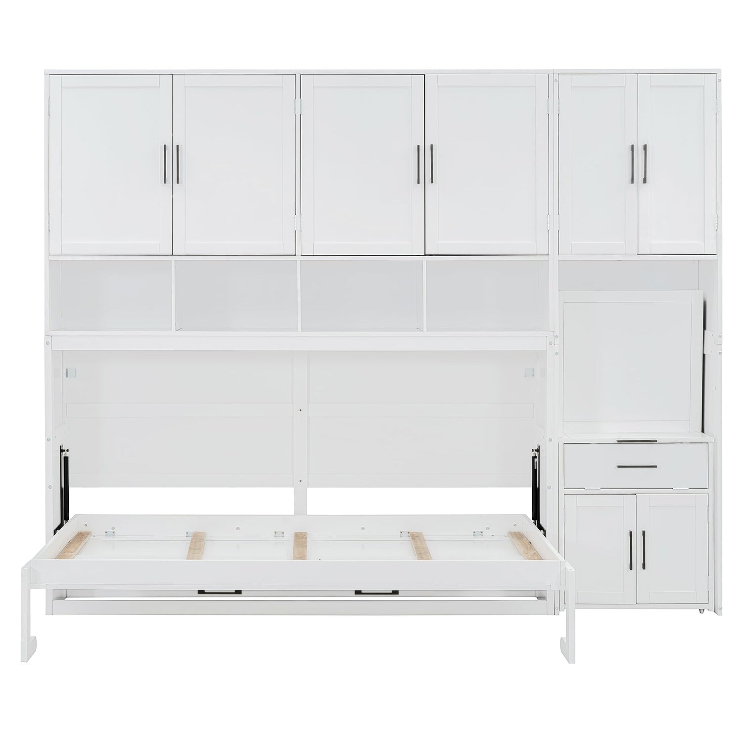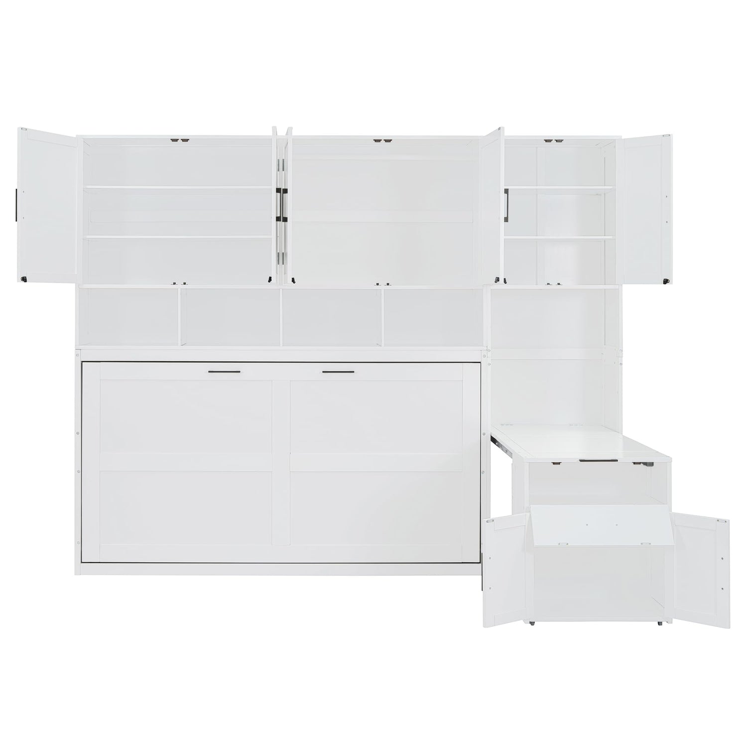 - [Space-Saving Design] Maximize your room's functionality with our Murphy Bed. Easily fold the bed up when not in use to free up valuable floor space for other activities. The under-bed storage shelf offers the perfect solution for storing bedding, pillows, or seasonal items, helping keep your space neat and organized.