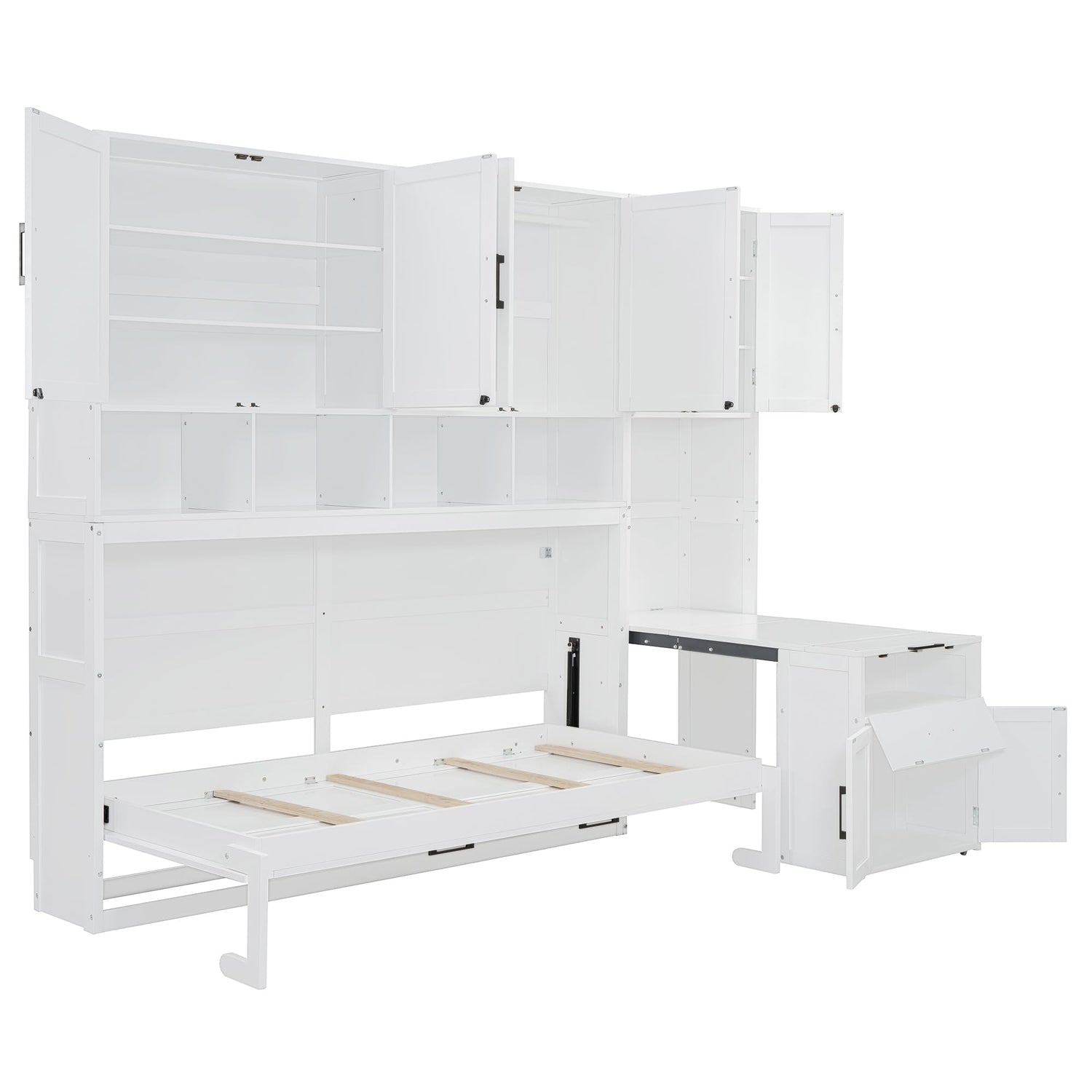 Harper & Bright Designs Twin Size Murphy Bed, Wooden Twin Wall Bed Frame with Closet, Drawers & Desk, White