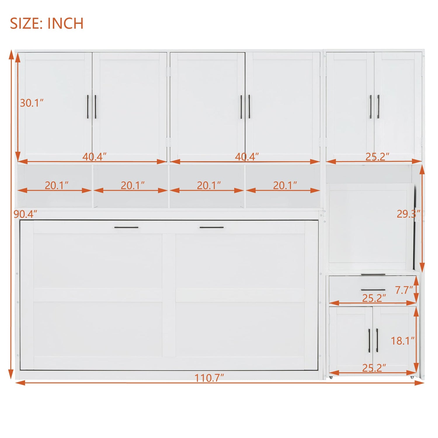 - [Murphy Bed Twin Size] Overall dimensions: 110.7"L x 15.7"W x 90.4"H. Mattress not included. Some assembly is required, but we’ve provided clear instructions and all the necessary tools to ensure a smooth and easy setup.