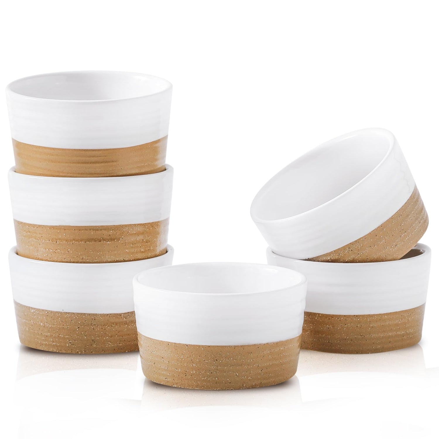 Hasense Ramekins, 6 oz Stoneware Ramekins Oven Safe Set of 6, Mini Ramekins Bowls for Dipping, Brulee, Custard, Farmhouse White Ramekins Gift