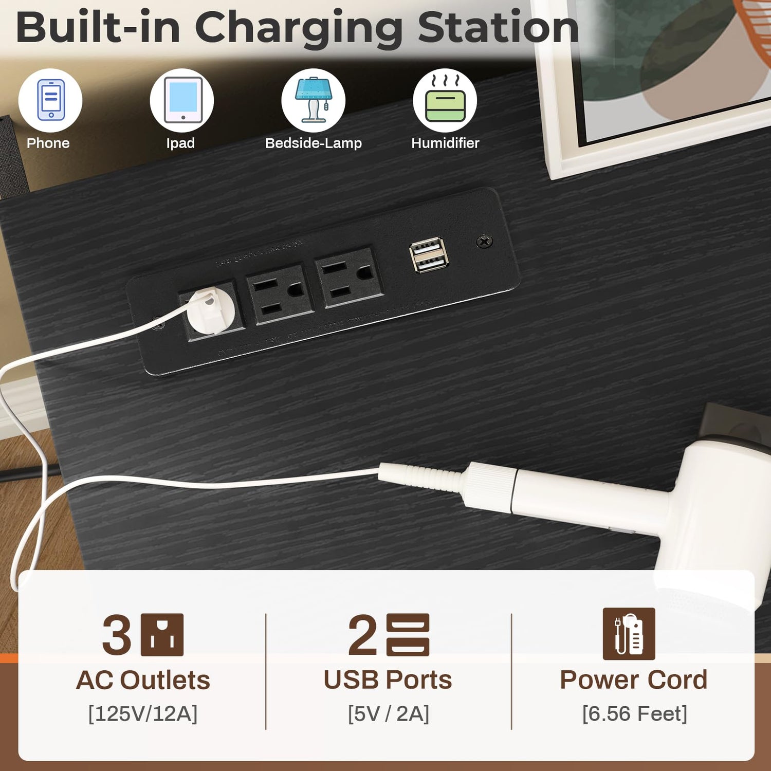 - 【Charging Station and USB Port】Drawer Dresser is equipped with 3 standard plug outlets and 2 USB ports, as well as a 6.56-foot-long power cord. Enables you to charge mobile devices such as mobile phones, keyboards, headsets, desk lamps, and other appliances at any time. Easy to use within your arms' reach.