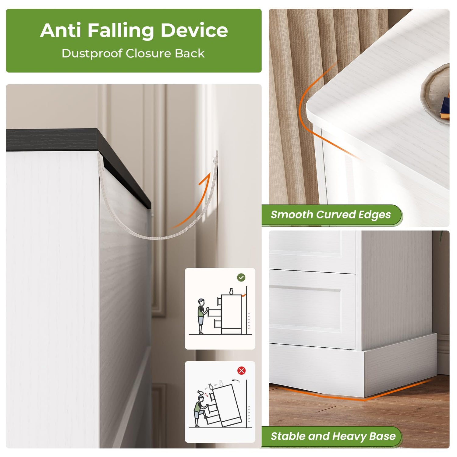 - 【Durable and Stable Tall Dresser】Dressers for bedroom is made of high-quality MDF engineered wood. Hard to both flex or crack. Drawers are equipped with high-quality metal slide rails and handles, which are easy to pull and save effort. The thickened back panel ensures the privacy of your storage while enhancing stability. Anti-tip kit included to keep your family safe.The stable base design made the dresser does not slide easily, provide great durability and stability. With support legs in the middle for added weight support.