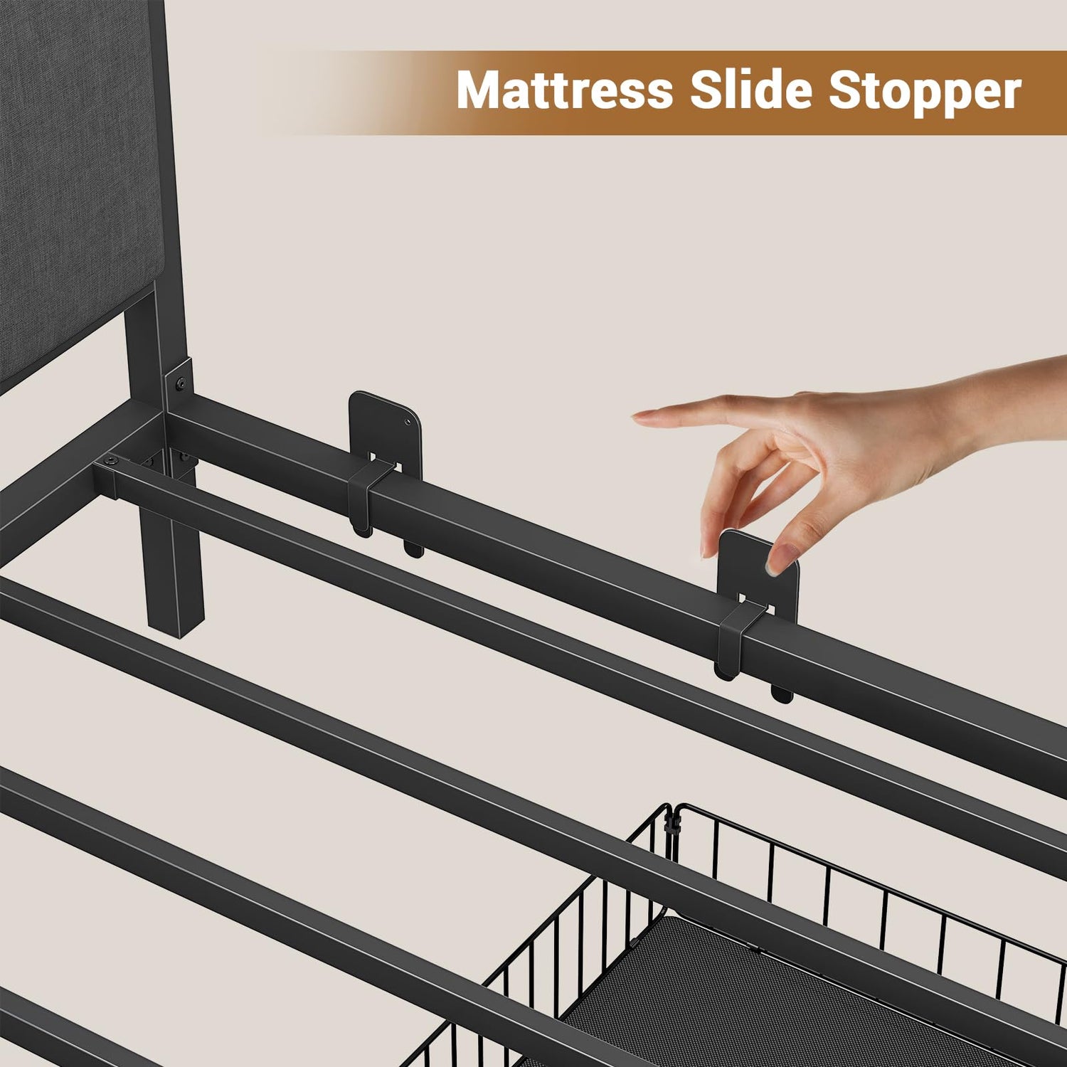 - 【Mattress Slide Stopper & Plastic Corner Protectors】 Each bed frame is equipped with 2 mattress slide stoppers, effectively preventing frequent use of the mattress brought about by sliding; 4 exposed bed frame iron corner stickers affixed with plastic corner protectors to reduce the damage caused by bumping.