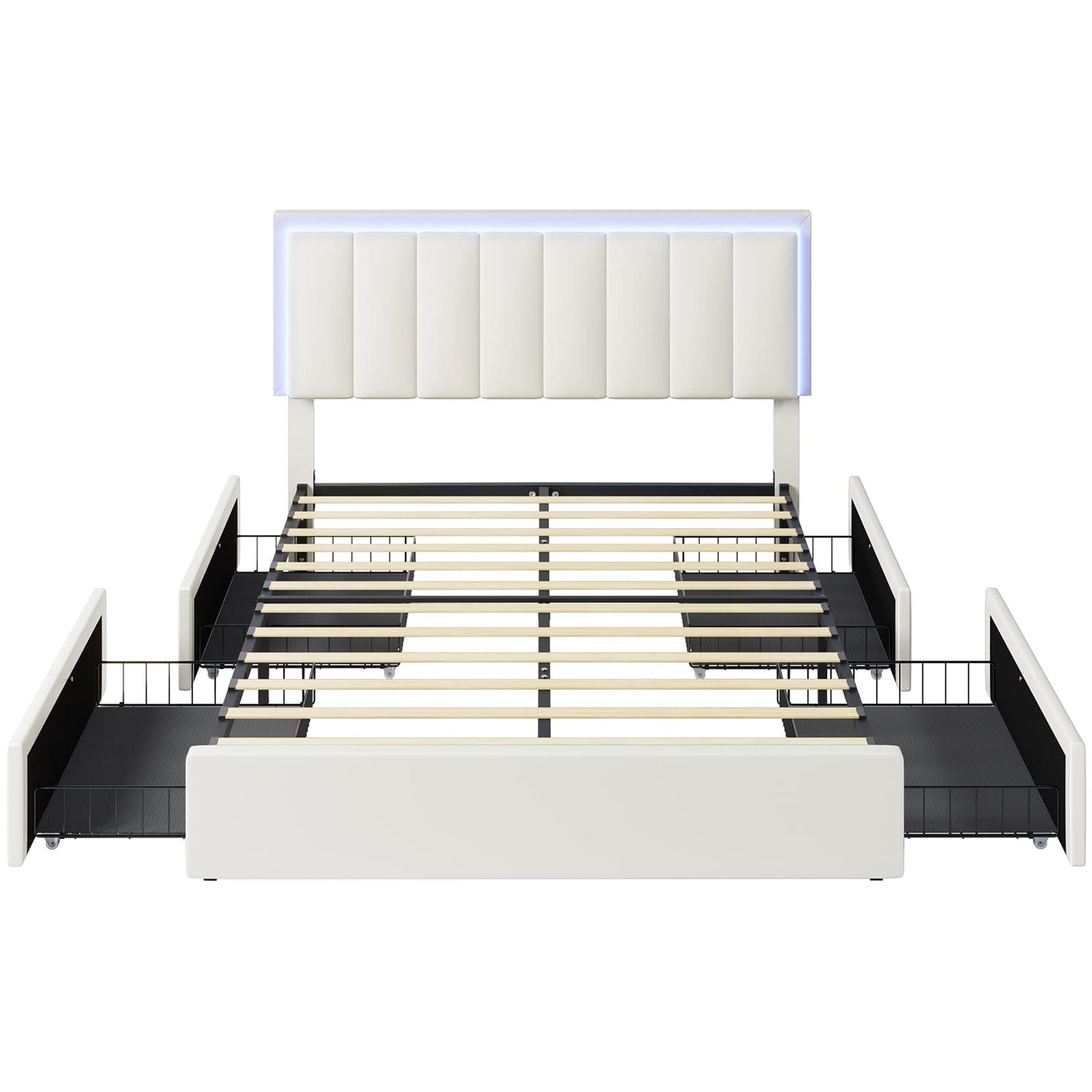 Hasuit LED Queen Bed Frame with 4 Storage Drawers & USB Charging Station