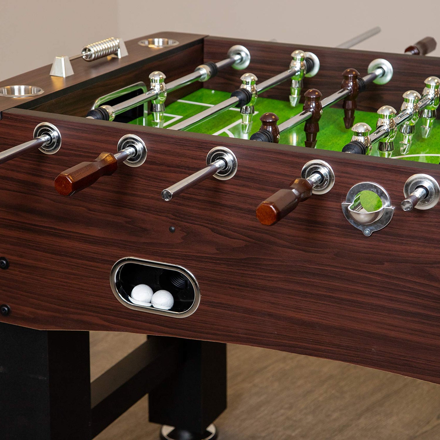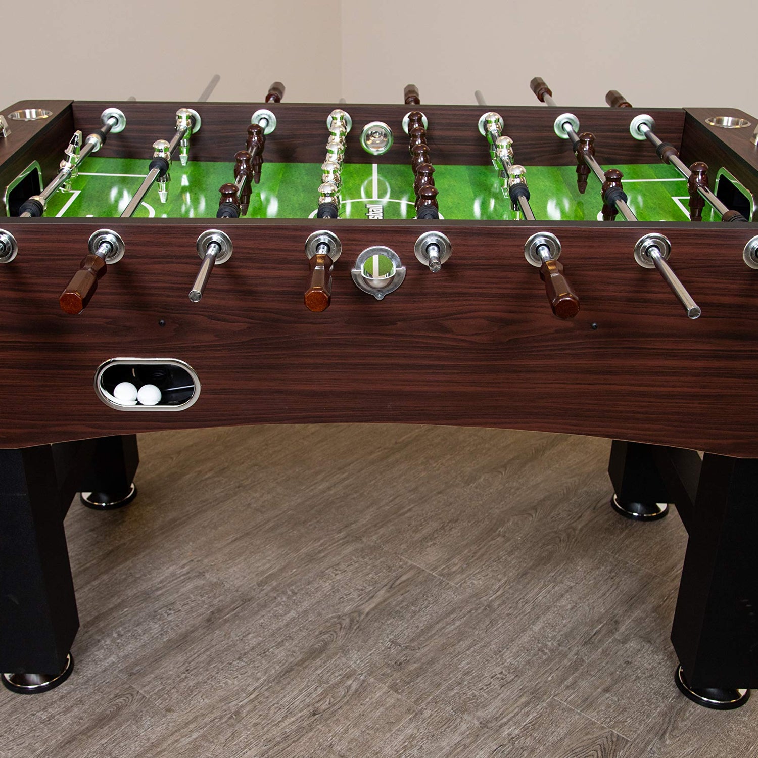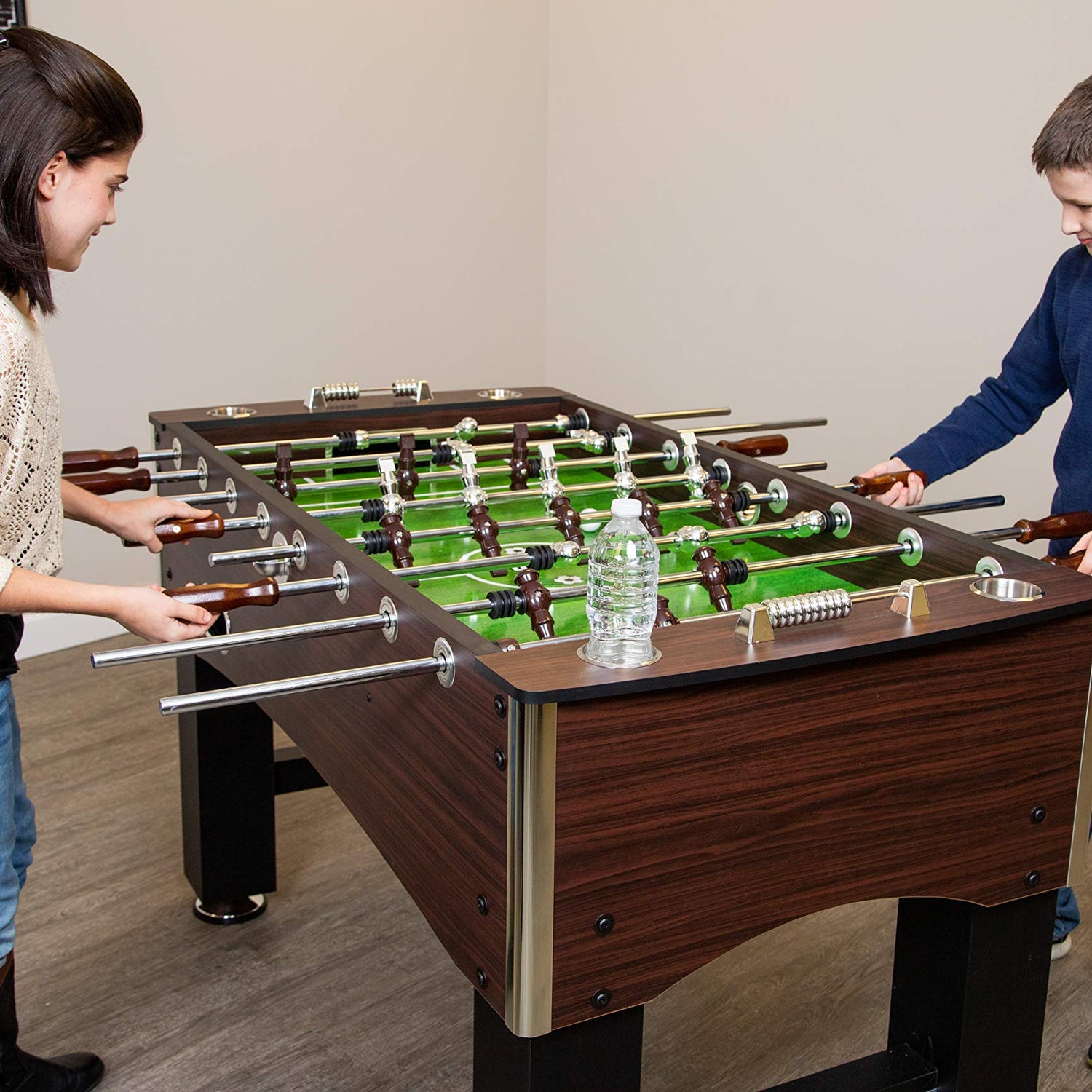 - FUN FOR THE WHOLE FAMILY – Enjoy classic foosball in a contemporary finish with this premium foosball table from Hathaway. Both kids and adults will love its ABS counterbalanced players, slick surface and grassy, soccer-like style.