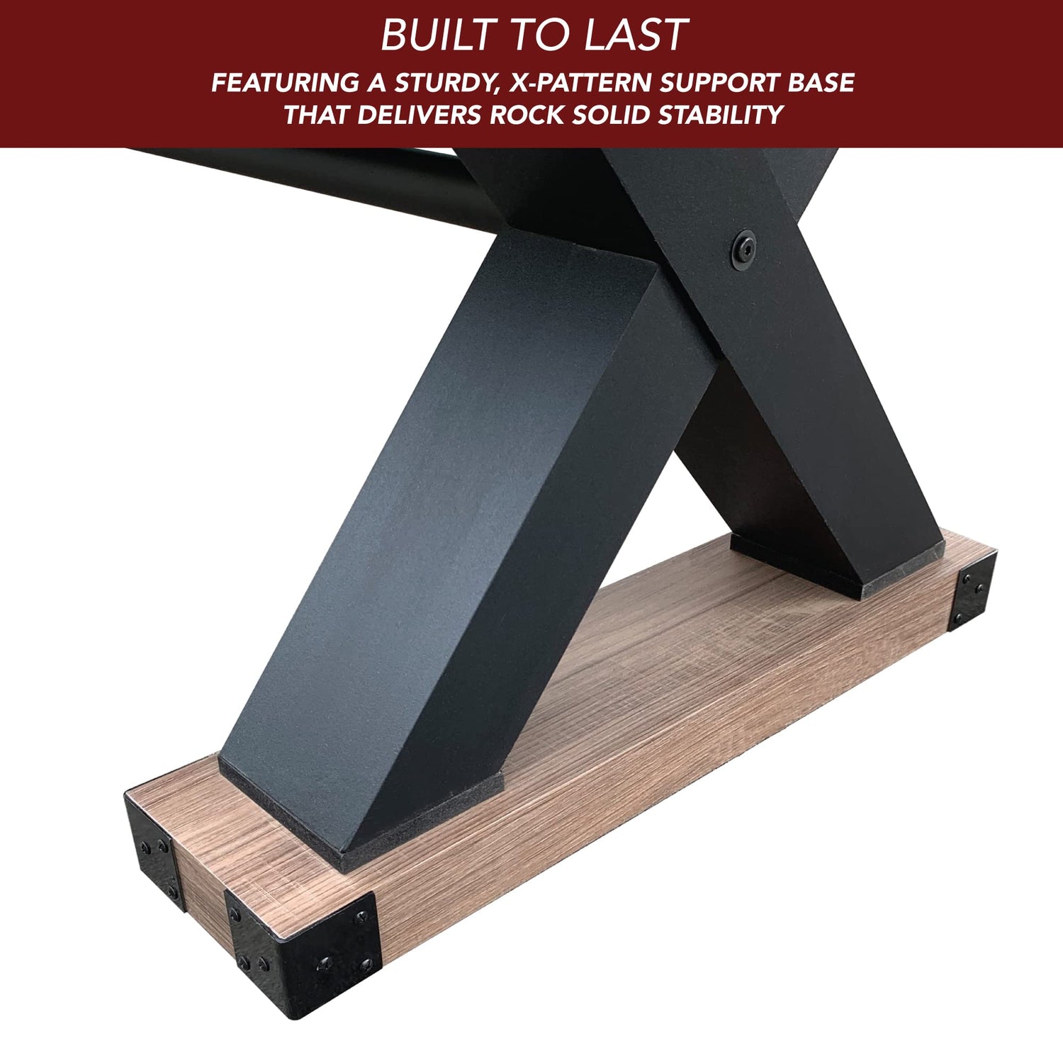- STRENGTH AND STABILITY - Sturdy, X-patterned legs with a 2-in diameter support bar provide strength and stability during even the most intense competition. Reinforced bases with hidden independent leg levelers ensure a level playing field.
