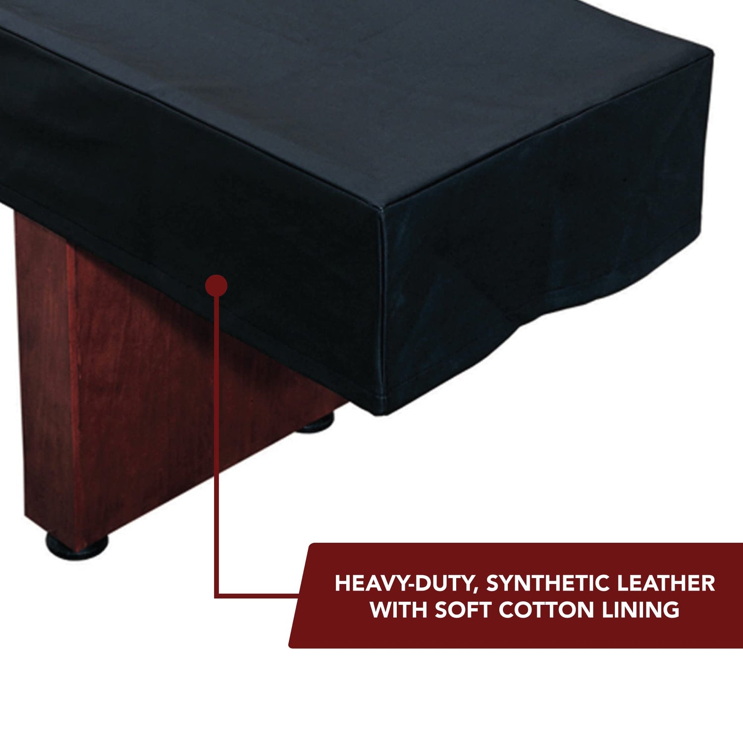 Details: This shuffleboard table cover will protect your table and keep it clean while not in use. Made of heavy-duty, synthetic leather and backed with a soft cotton fabric lining, this cover will not only protect your table but will last for years and years. Keep your glossy play surface free of dust with this shuffleboard table cover.