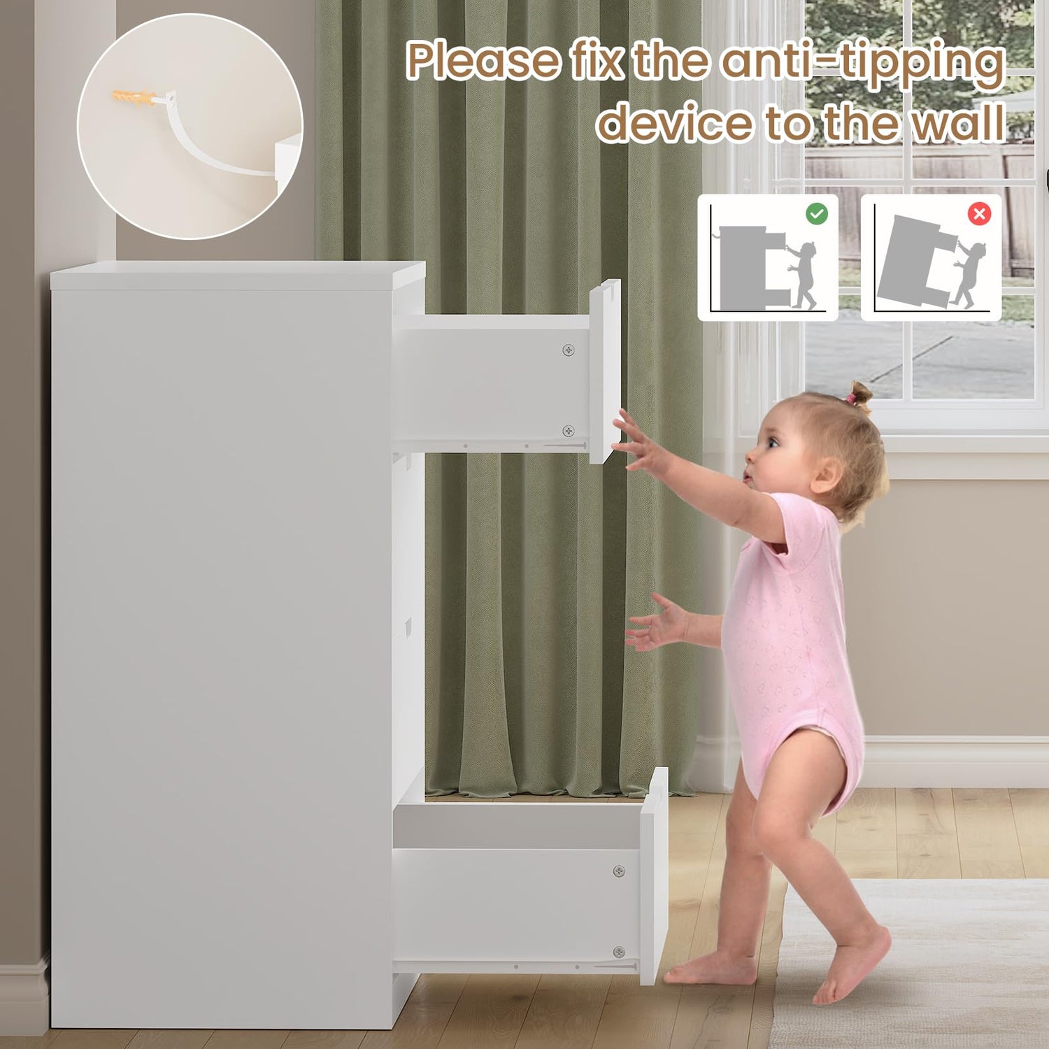 - 【Durable & Stable】-The dresser is made of engineered wood.The thickened tabletop ensure durability and stability, premium metal slides ensure the drawers run smoothly.Its unique base design contribute to its exceptional stability, essential anti-tipping belt making it safer and more reliable for everyday use