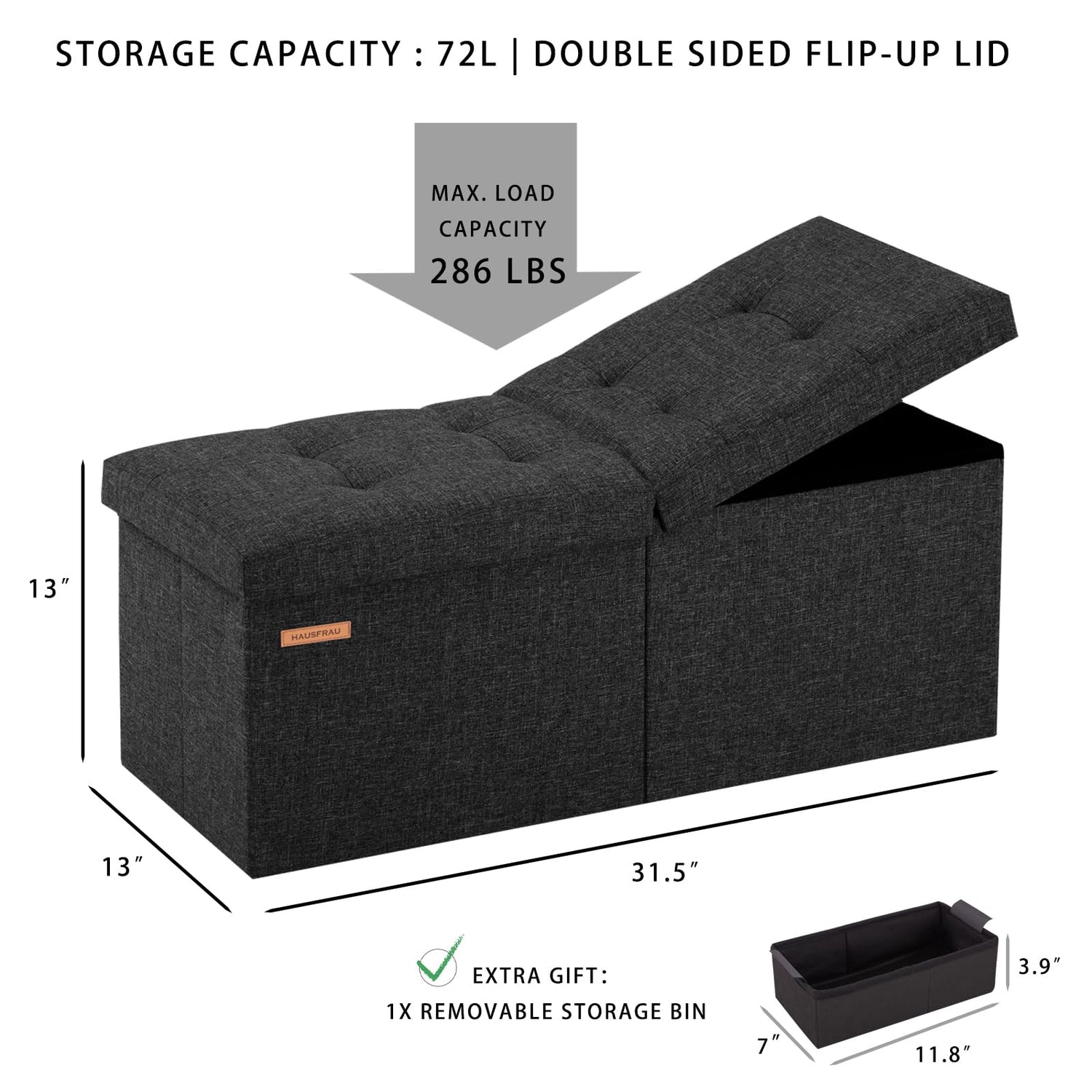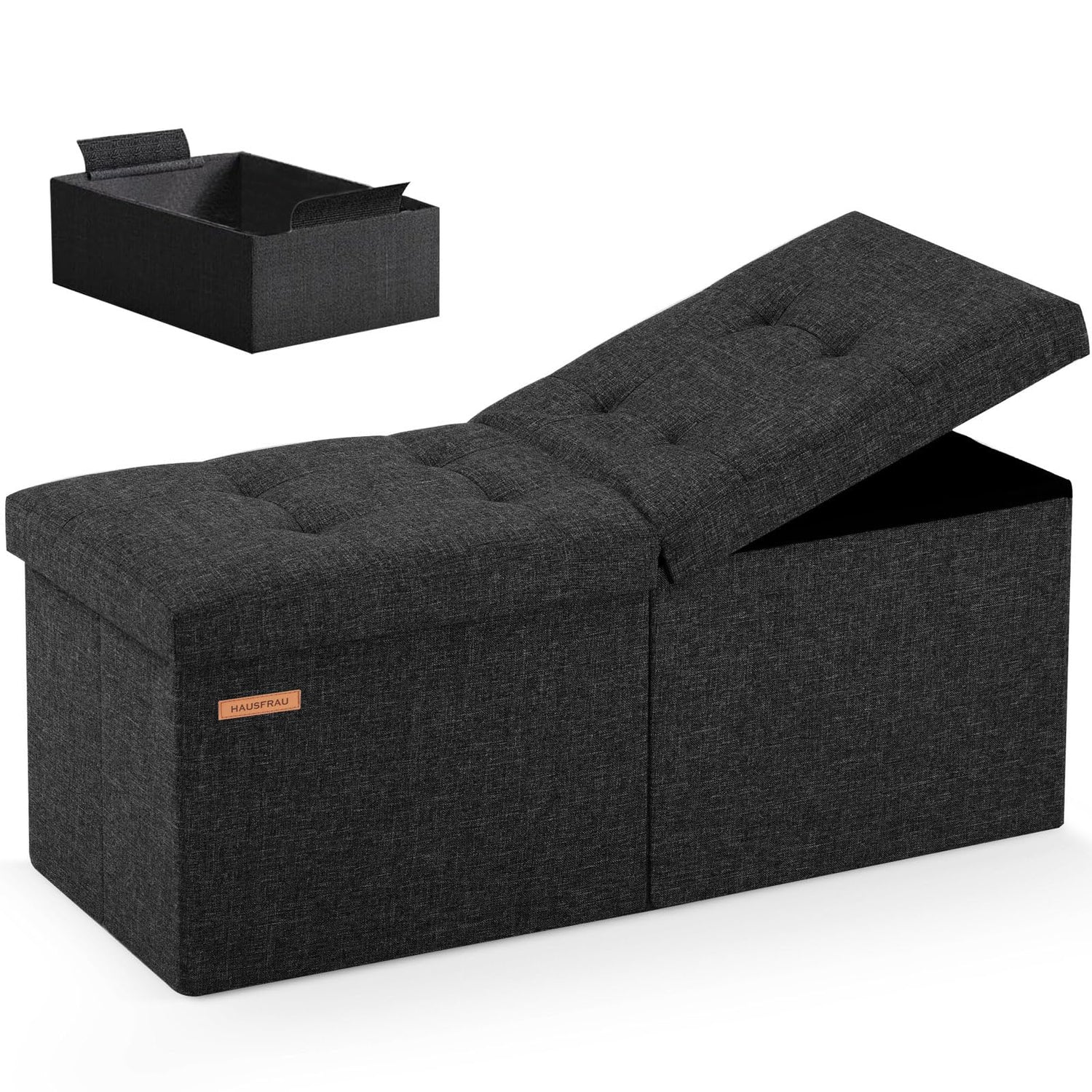 HAUSFRAU 31.5 Inches Ottoman with Storage, Folding Ottoman Bench Small Foot Rest Stool, Bedroom Bench with Flipping Lid, Linen Black