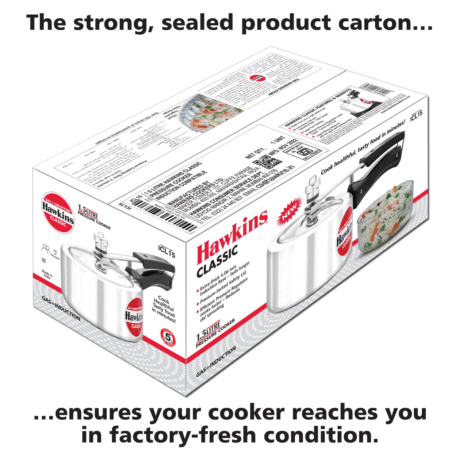 Hawkins 1.5 Litre Classic Pressure Cooker, Induction Inner Lid Cooker, Pan Cooker, Best Cooker, Silver (ICL15)