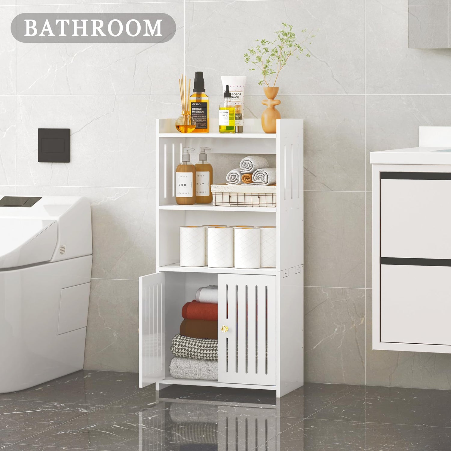HAYOFAMY Bathroom Storage Cabinet, 4-Tier White Floor Cabinet Freestanding Organizer with Door for Living Room Kitchen Small Space