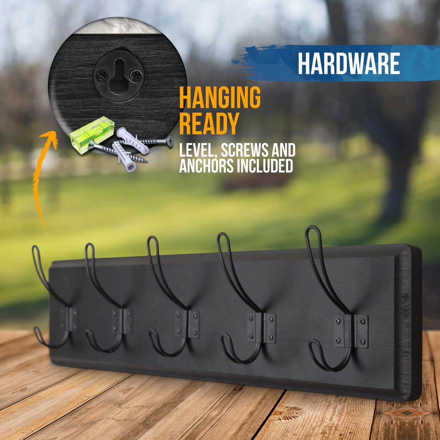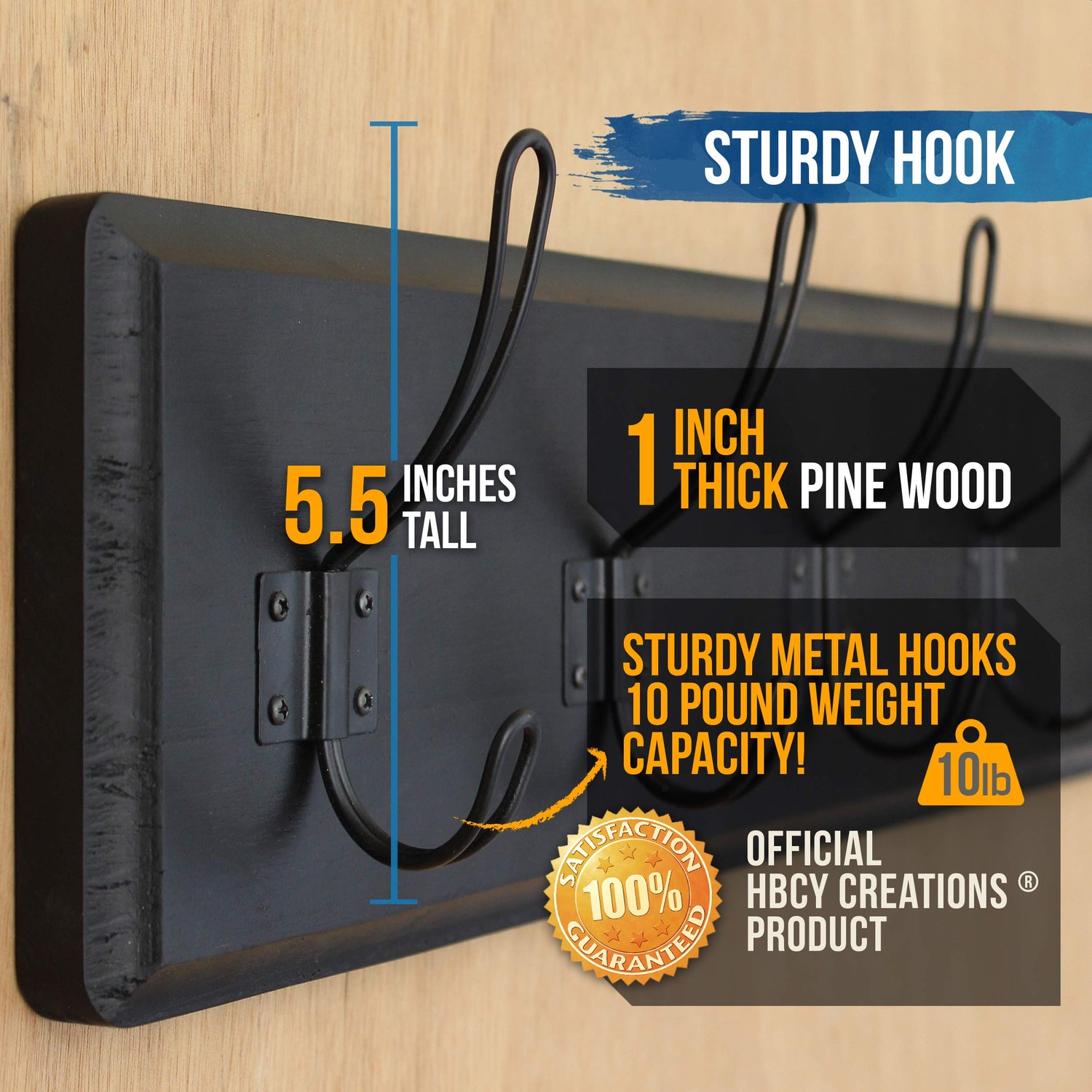 - Solid Wood and Metal Hooks: Made from solid pine wood, this 24" Rustic Coat Rack delivers a vintage farmhouse look. The durable metal hooks are perfect for hanging clothes, hats, purses, keys, and even a dog leash.