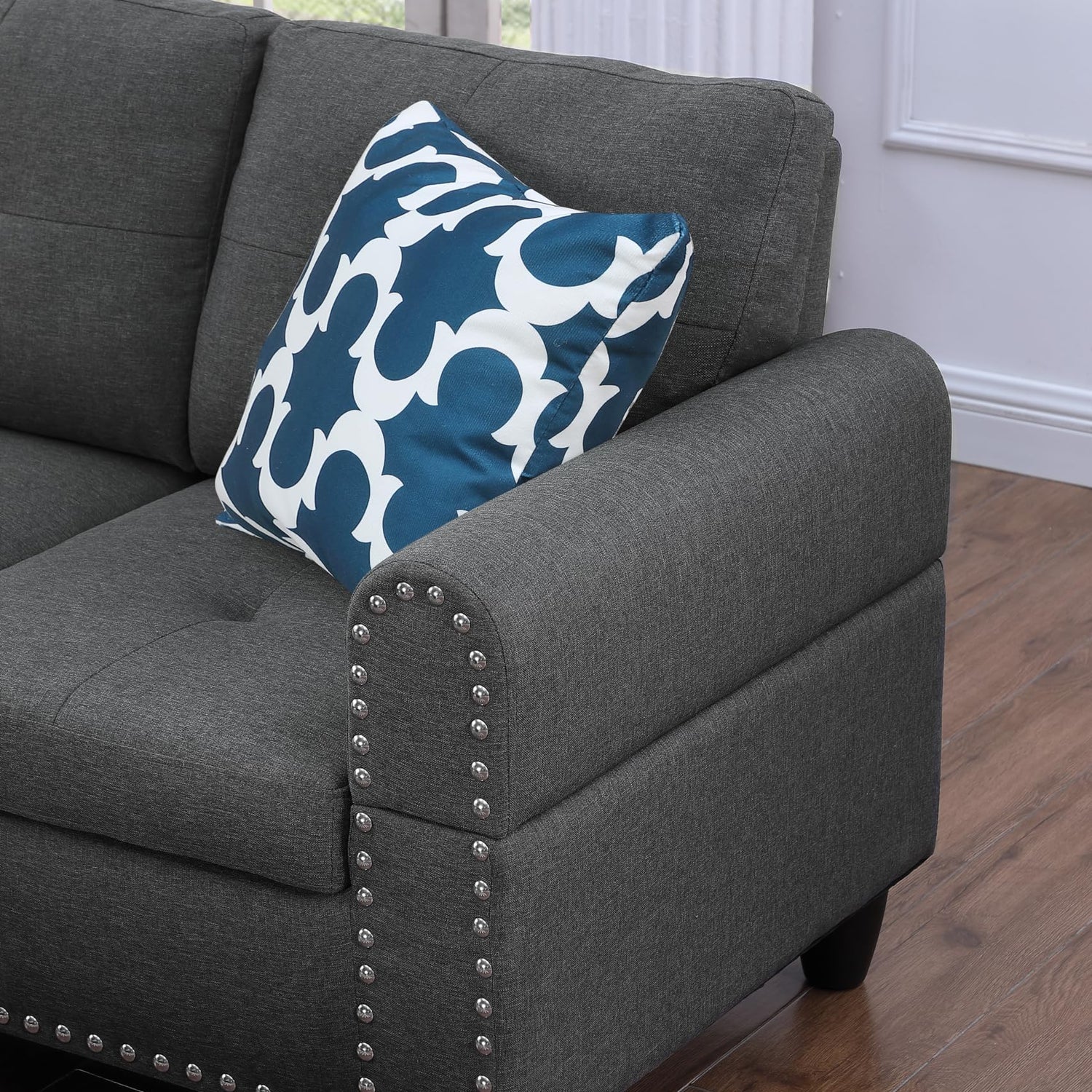 HBRR Reversible Sectional Sofa with Ottoman, Living Room Set, Left Facing Chaise, 2 Cup Holders, 2 Throw Pillows, Dark Gray, 71" D x 98" W x 33" H