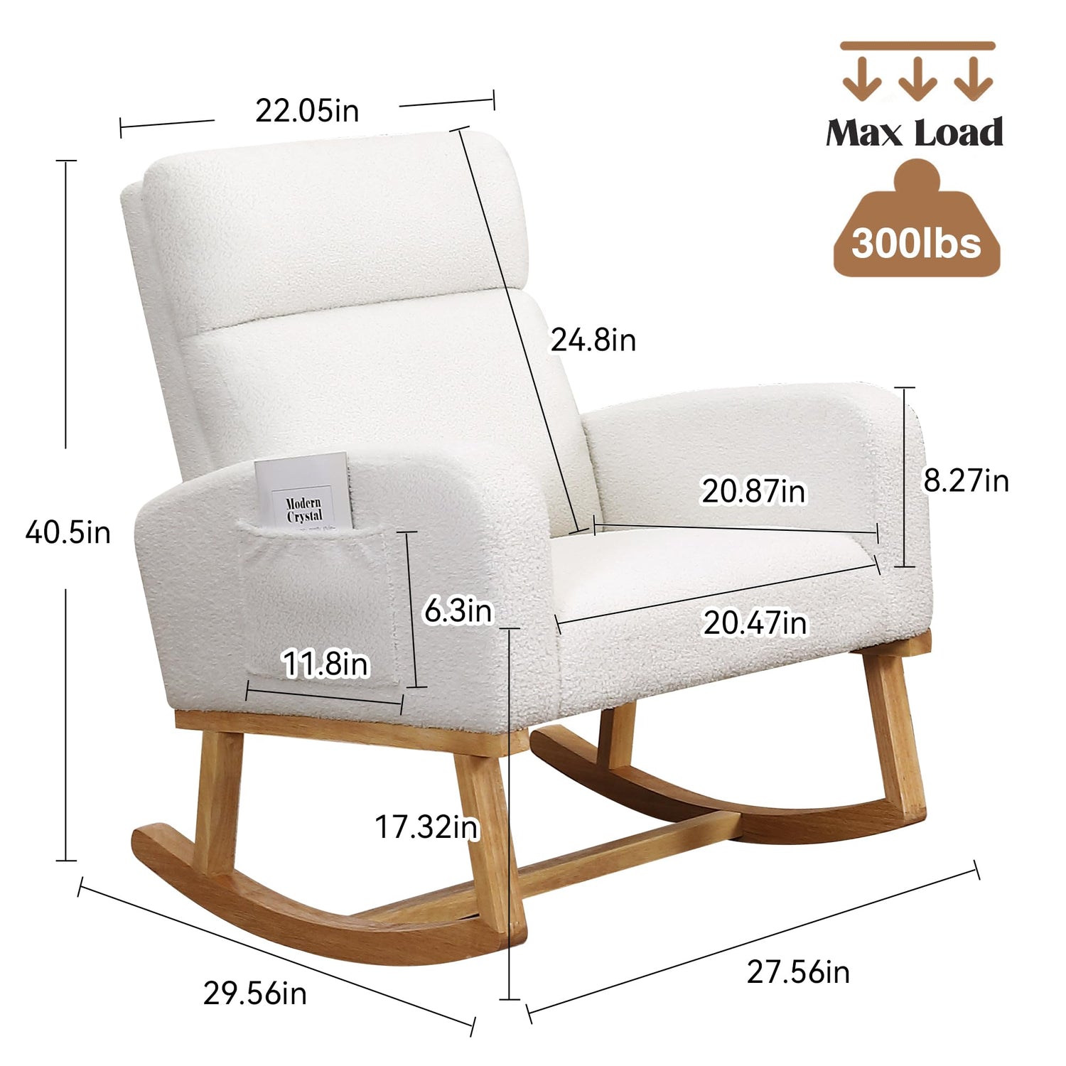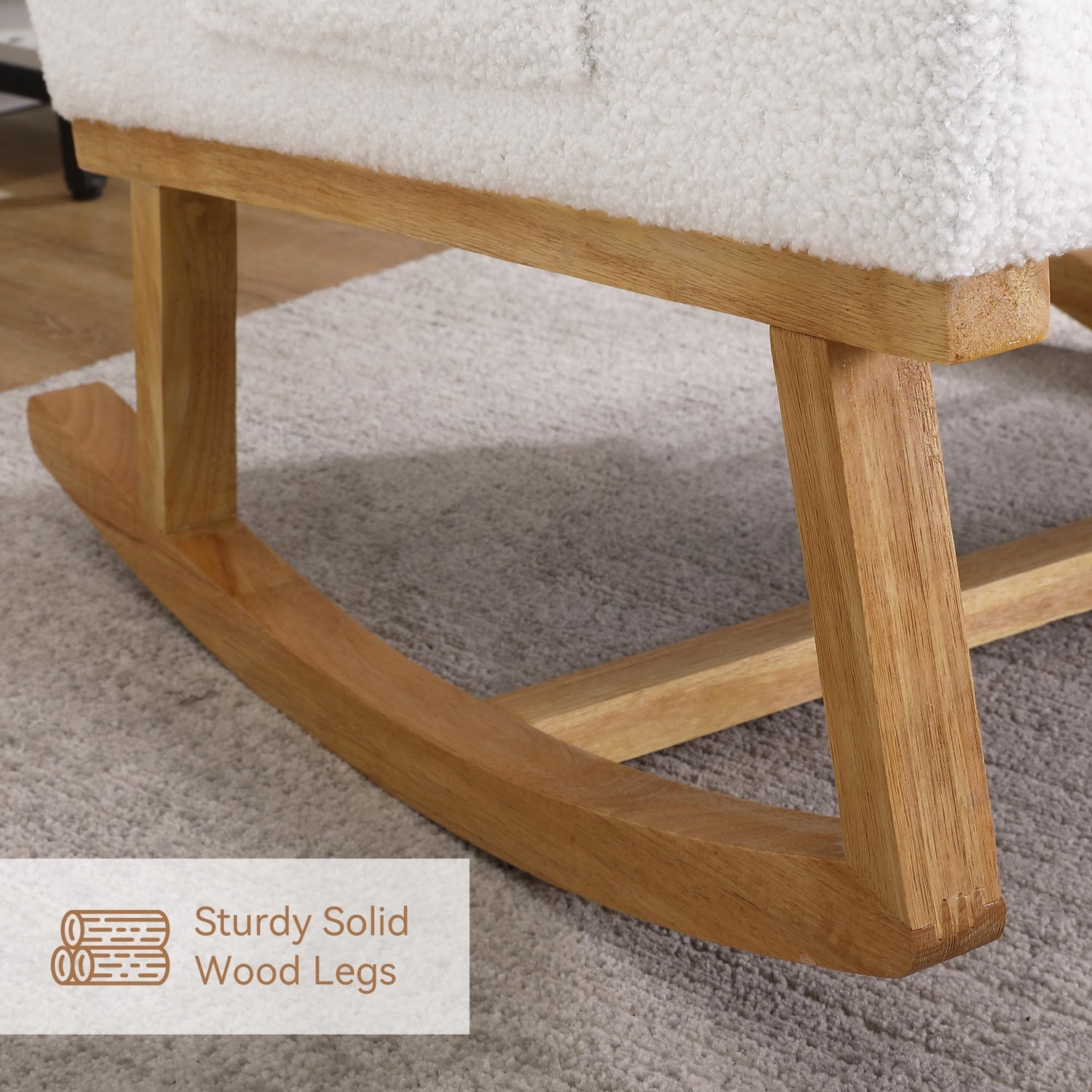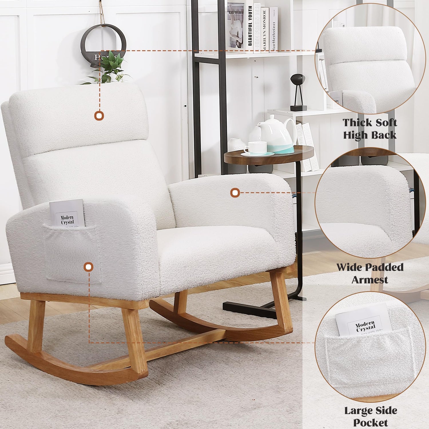 HCHAIRH Rocking Chair Nursery, Sherpa Nursing Rocking Armchair for Mom Nursery Morden Rocker Chair with High Backrest for Living Room,Bedroom,Teddy White