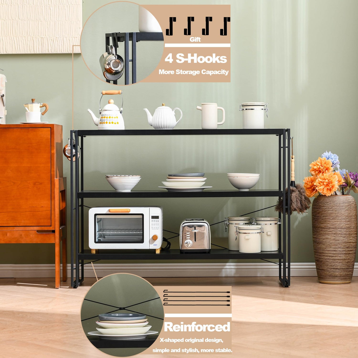 HCHQHS Bookshelf, 3-Tier Industrial Bookcase, Black Open Book Shelf, Freestanding Horizontal Bookshelves with Metal Frame