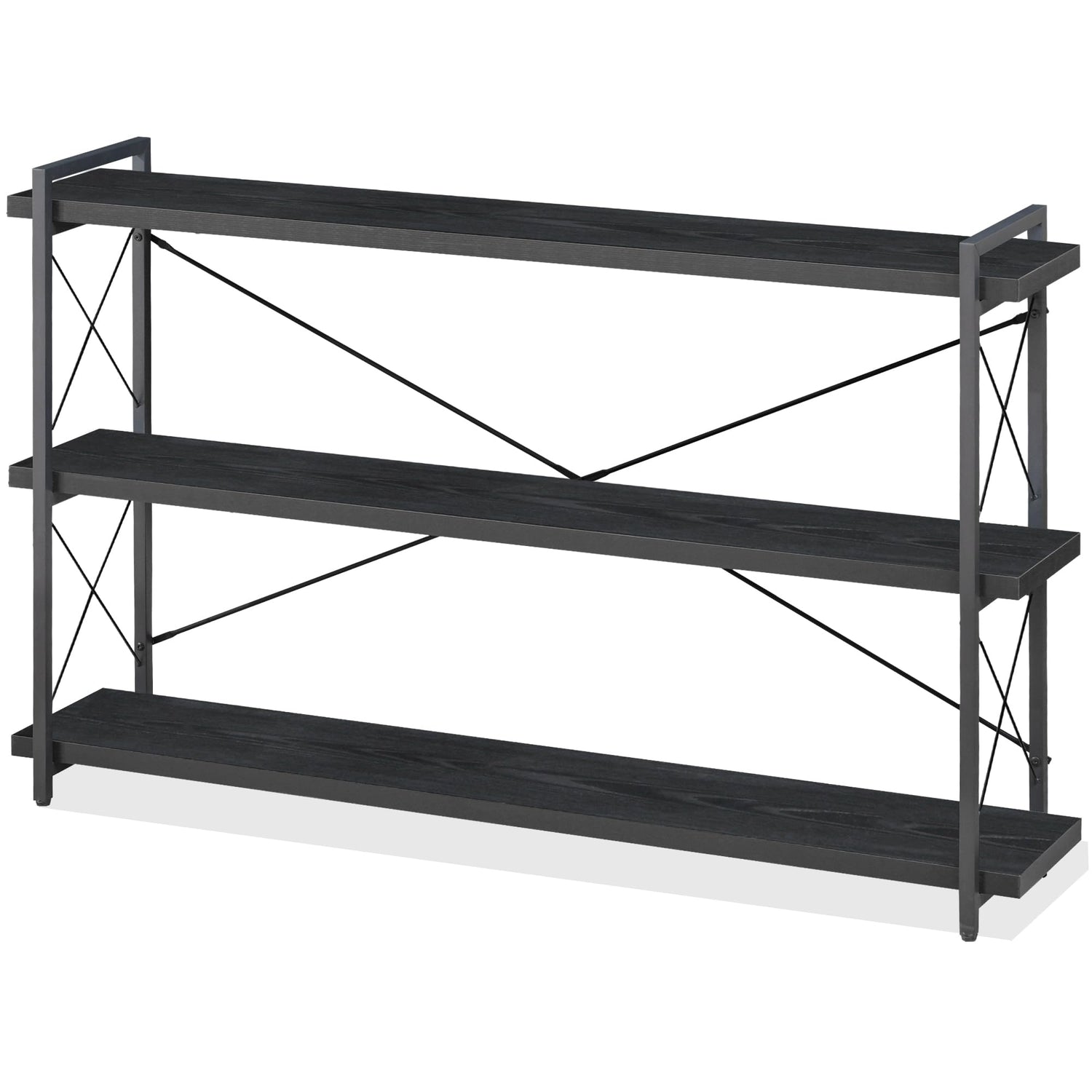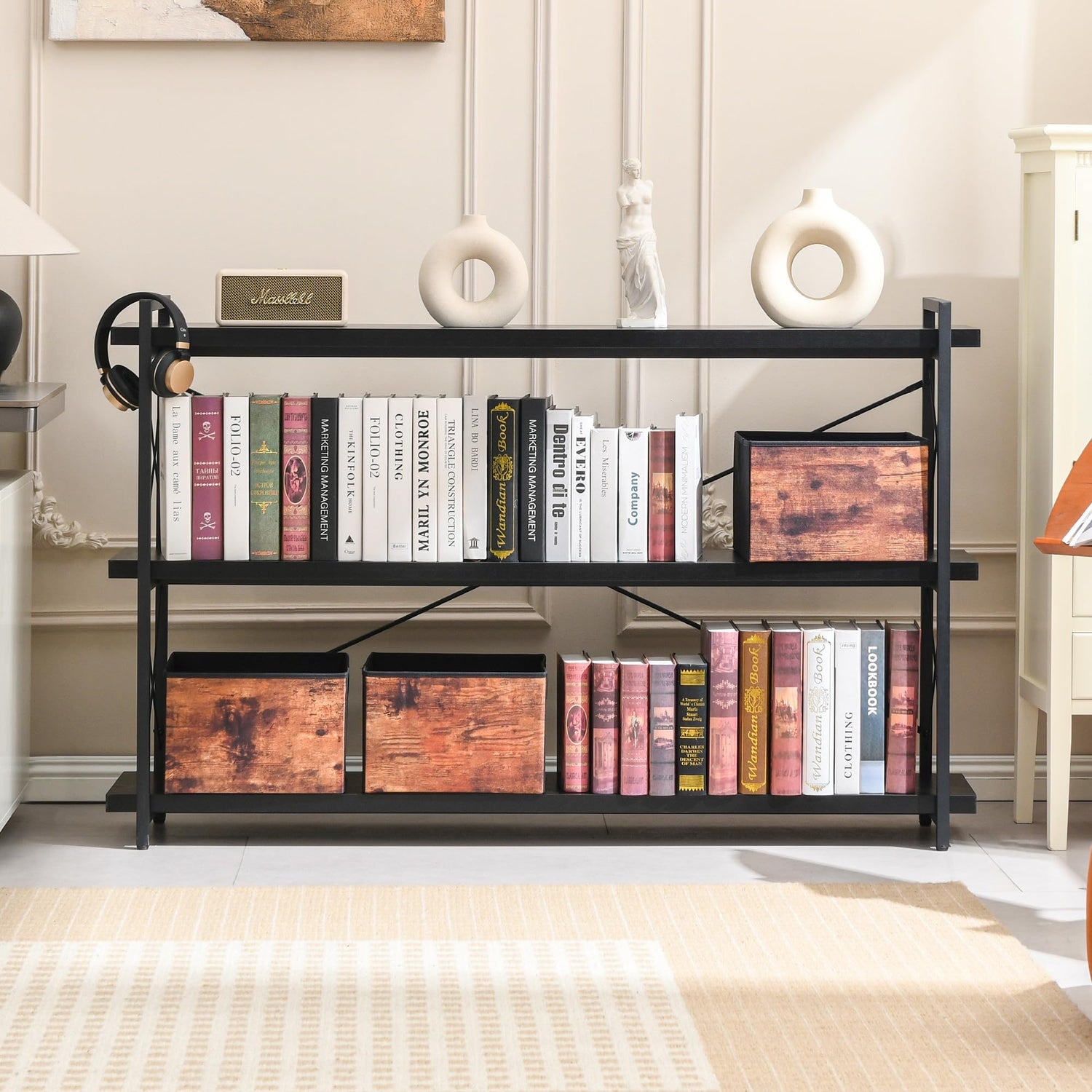 HCHQHS Bookshelf, 3-Tier Long Industrial Bookcase, Black Open Book Shelf, Freestanding Horizontal Bookshelves with Metal Frame