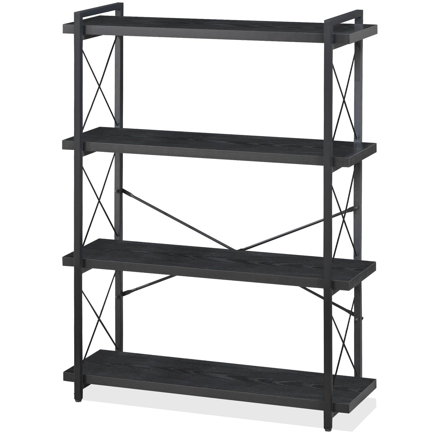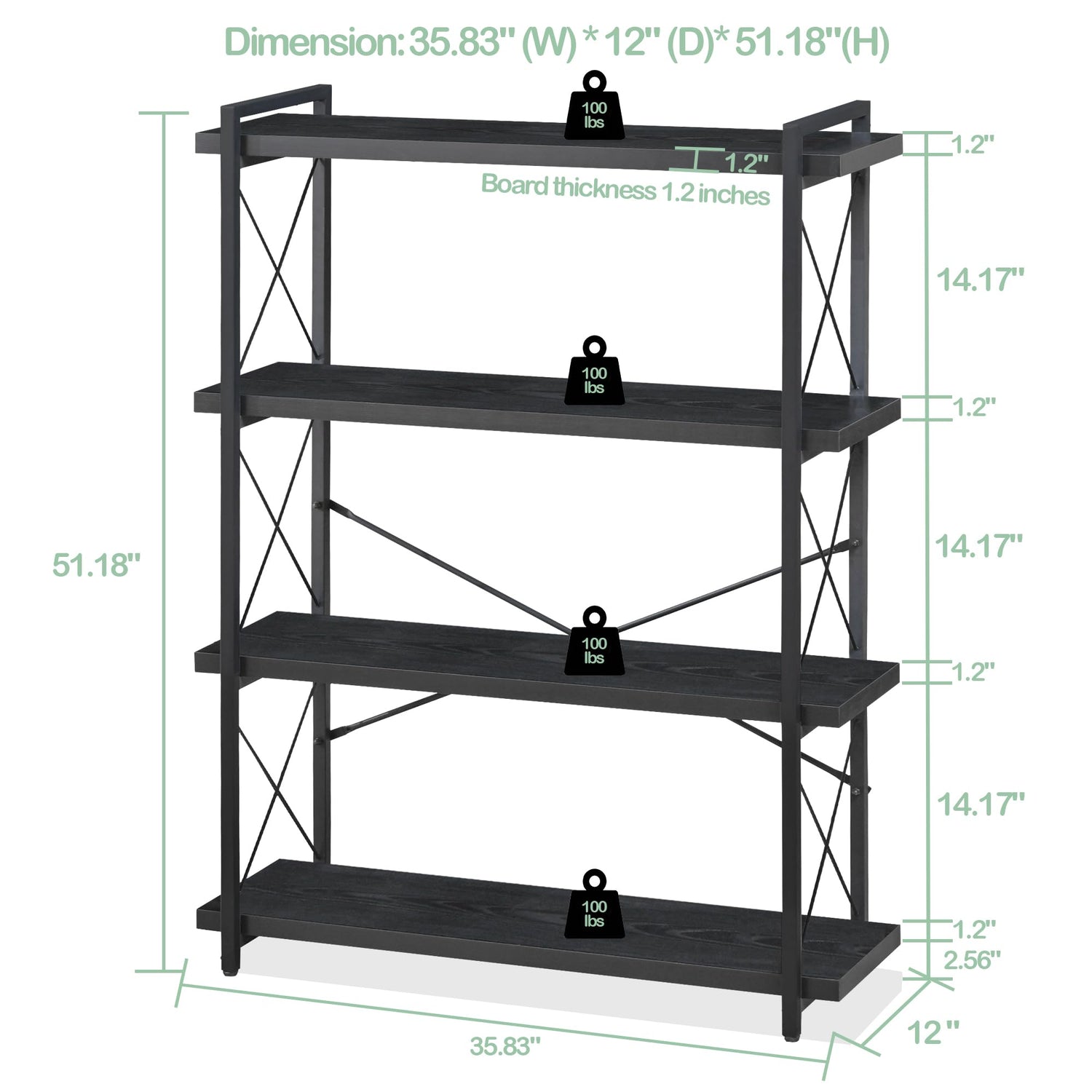 HCHQHS Bookshelf, 4-Tier Industrial Bookcase, Black Open Book Shelf, Freestanding Tall Bookshelves with Metal Frame
