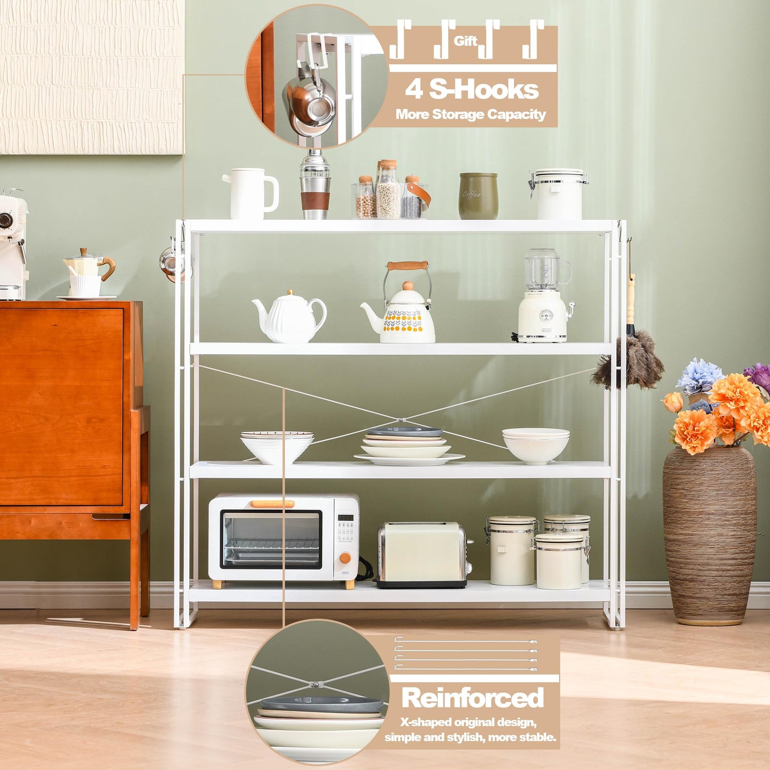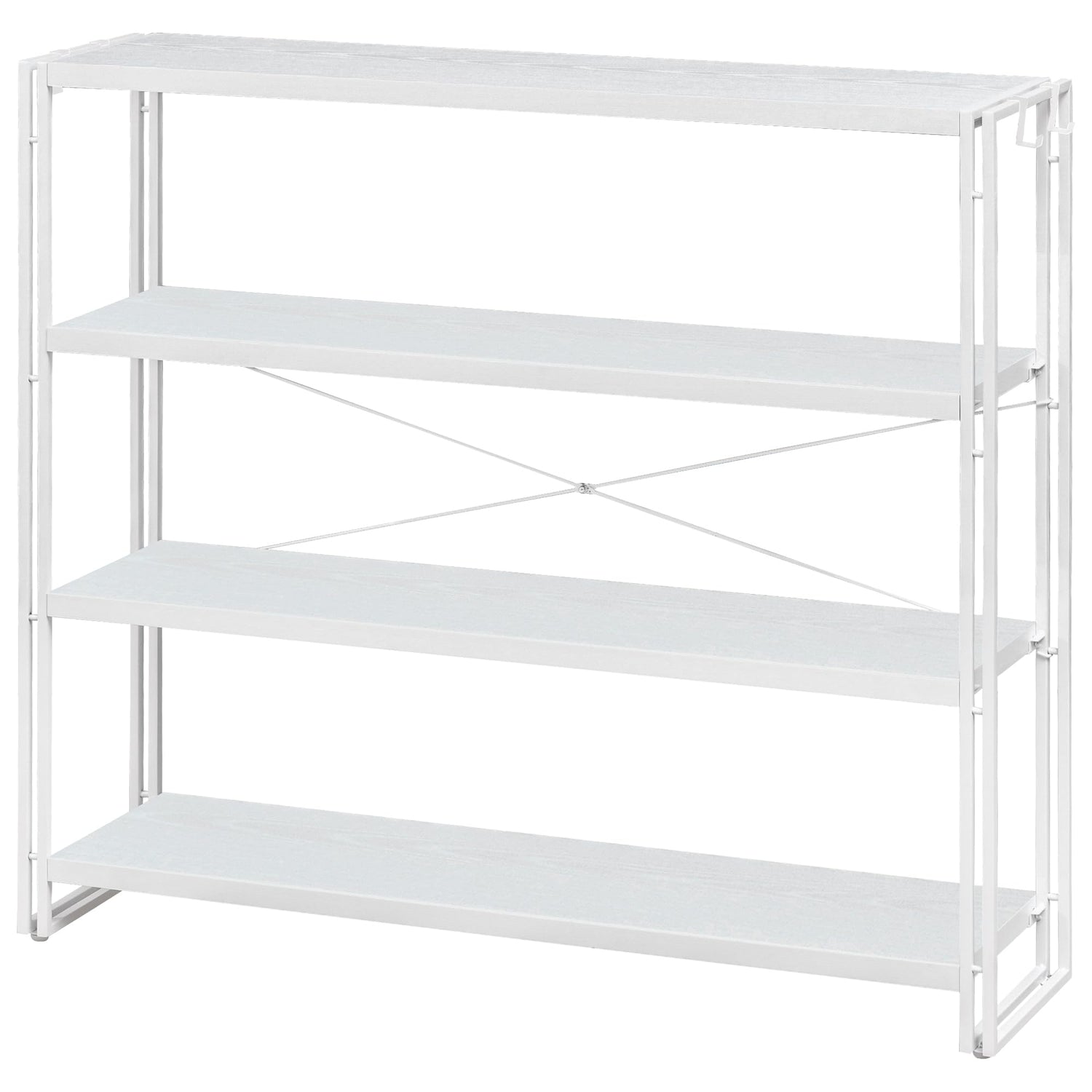 HCHQHS Bookshelf, 4-Tier Industrial Bookcase, White Open Book Shelf, Freestanding Tall Bookshelves with Metal Frame