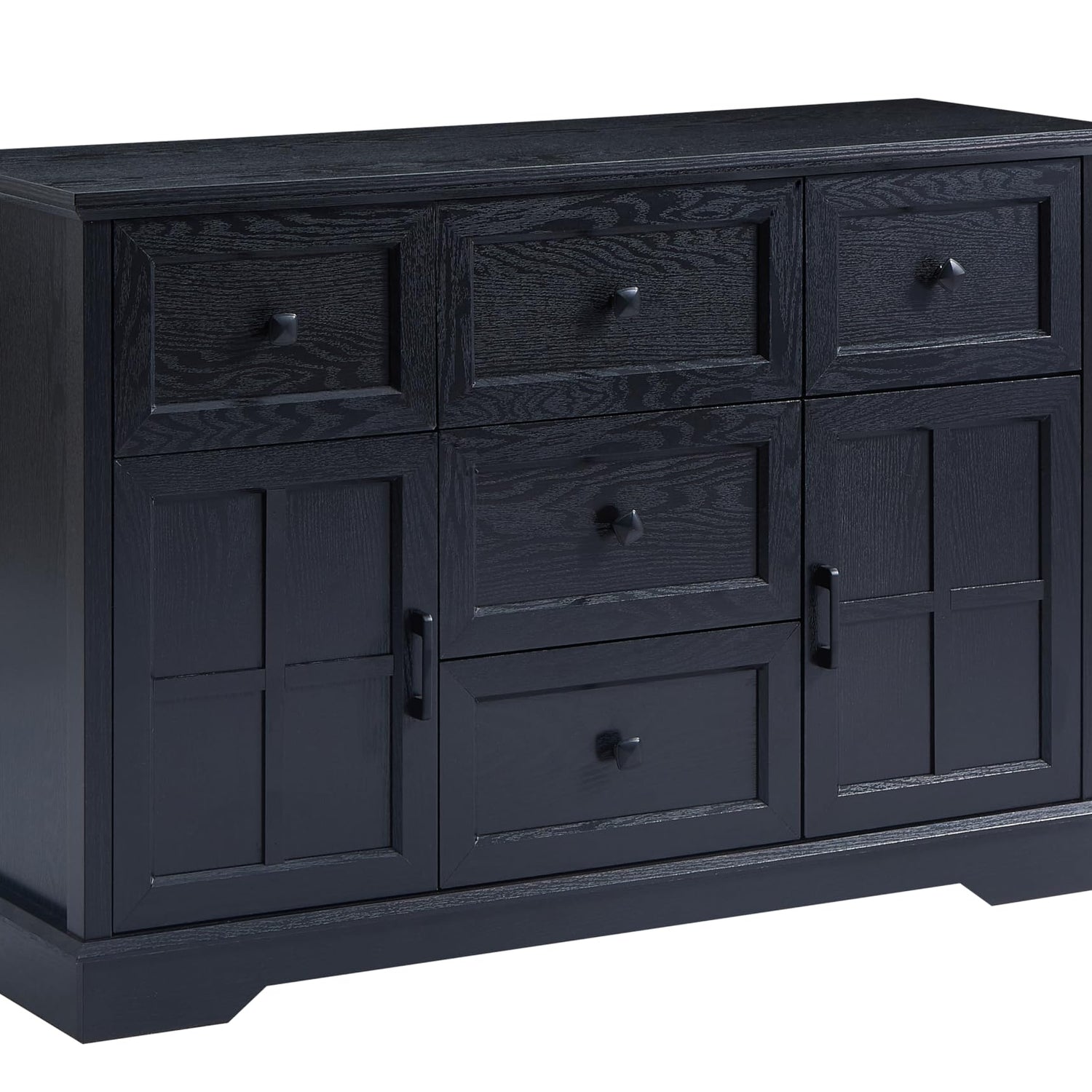 - 【Large Storage Capacity】 Keep your kitchen or dining area organized with ease. The two cross doors offering versatile storage options and ample space for all your needs. The wide tabletop is perfect for coffee makers, microwaves, or decorative displays, while the five drawers are ideal for organizing tableware, utensils, or other essentials.