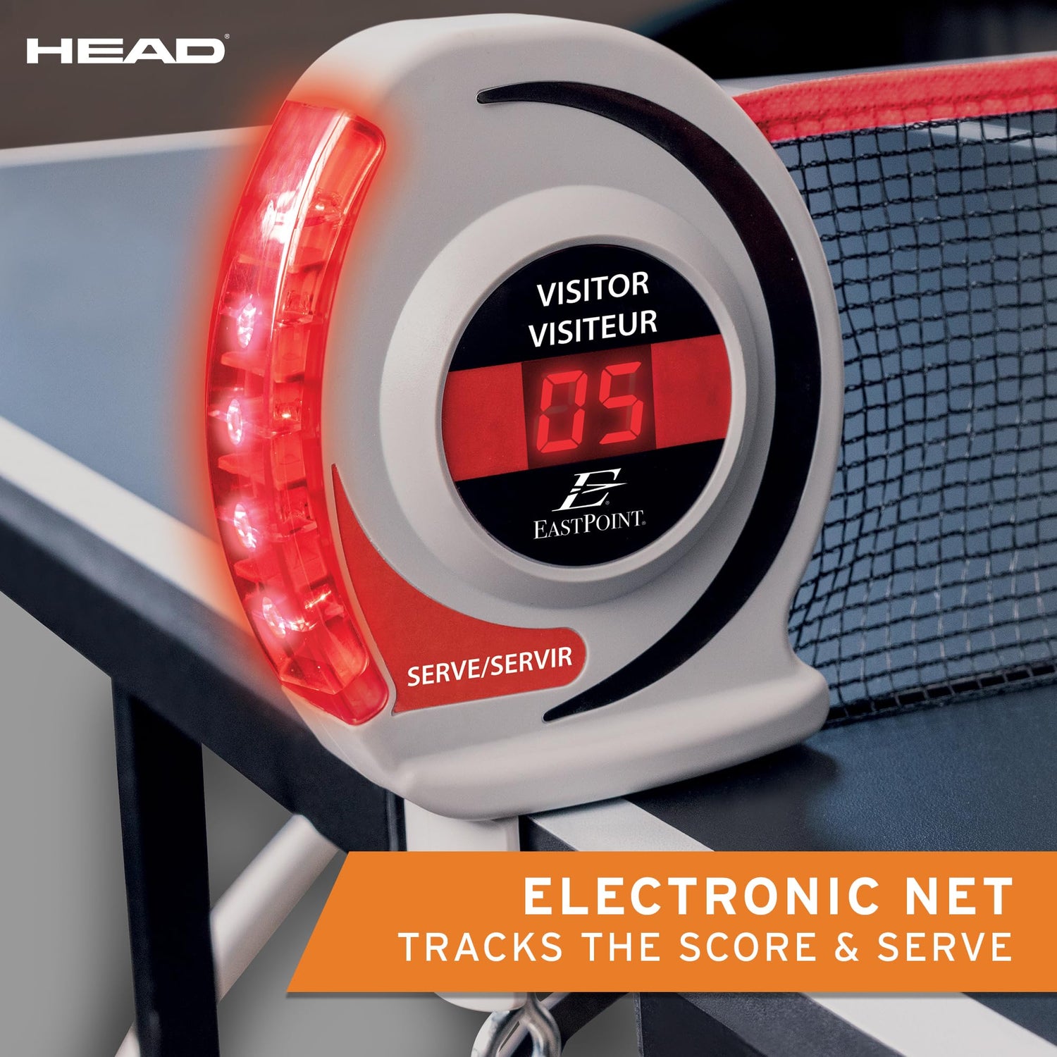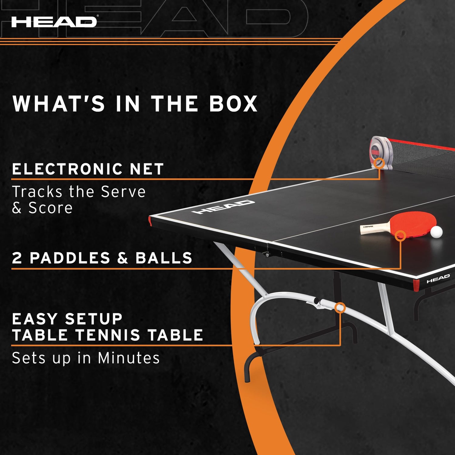 HEAD Easy Setup Ping Pong Table with Electronic Scorer - Junior Folding Table Tennis Table for Easy Storage - Game Room Table Includes 2 Paddles and Balls