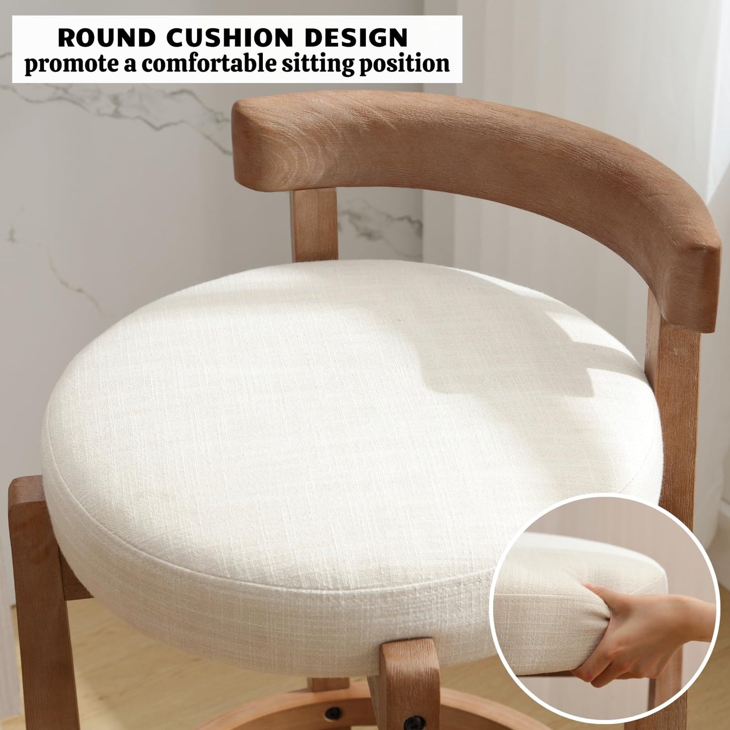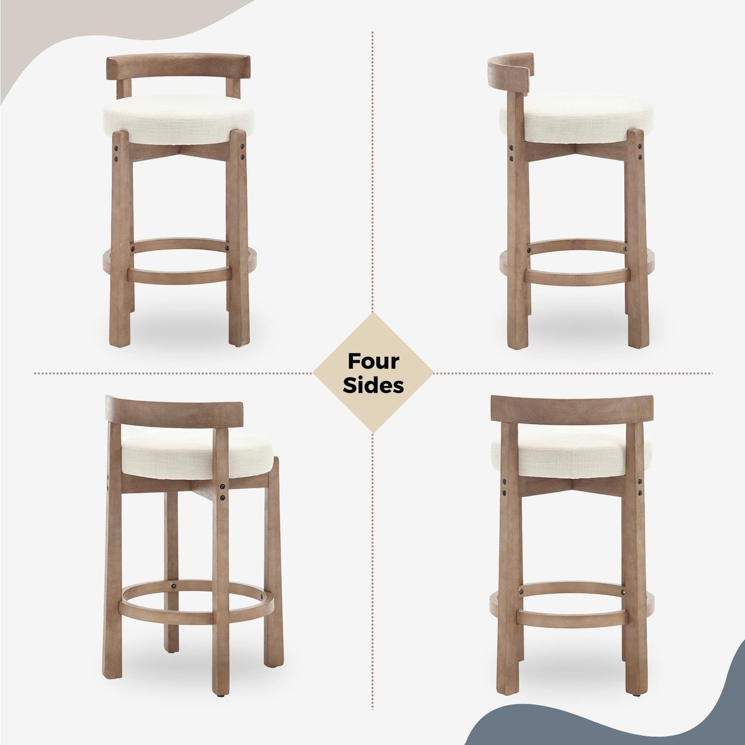 HEAH-YO Mid Century Modern Bar Stools Set of 2, 26.5" Counter Stools with Back, Linen Upholstered Barstools with Solid Wood Legs Bar Chairs for Kitchen Island Dining Room, Beige