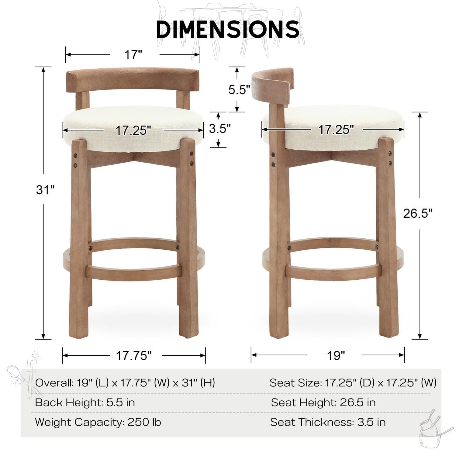 - Dimensions: Overall dimension: 19"L x 17.75"W x 31"H. Seat size: 17.25" D x 17.25" W x 3.5" Thickeness. This kitchen stool is suitable for individuals weighing up to 275lbs. Its compact size makes it convenient for those with limited space.