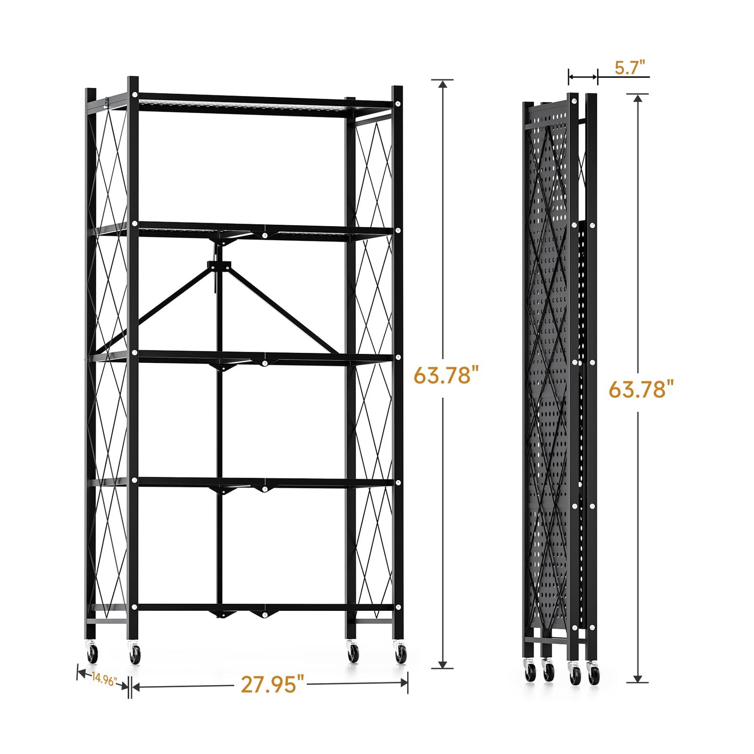 - Multifunction - 5-Shelf foldable shelving unit is suitable for your kitchen, office, garage, bathroom, and so forth