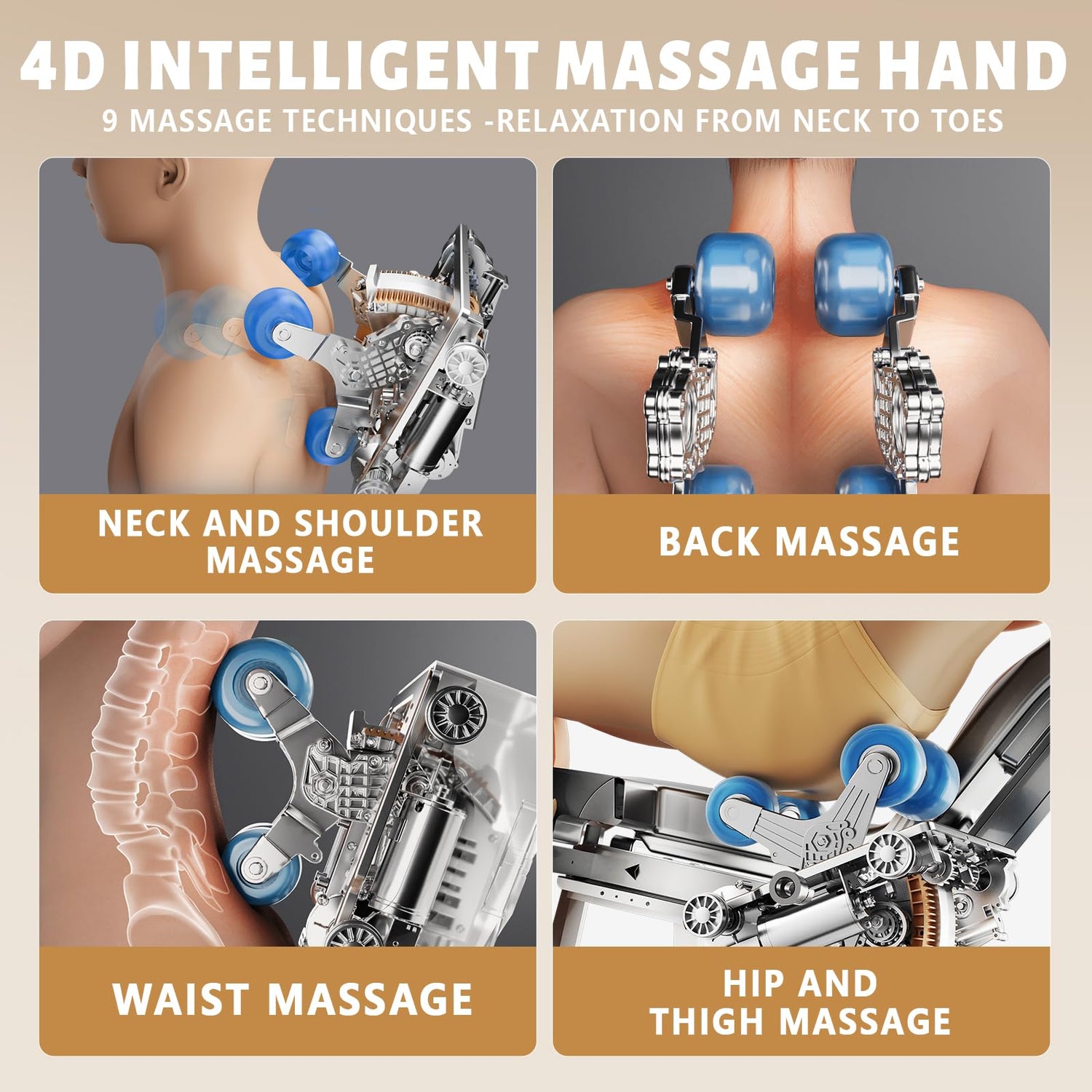 HealthRelife 4D Massage Chair Full Body Zero Gravity Recliner - 55“ SL-Track,15 Auto Modes,11 Massage Technique,40 Airbags Massage,with Yoga Stretch,APP Control,Shiatsu Foot Massage(Beige)