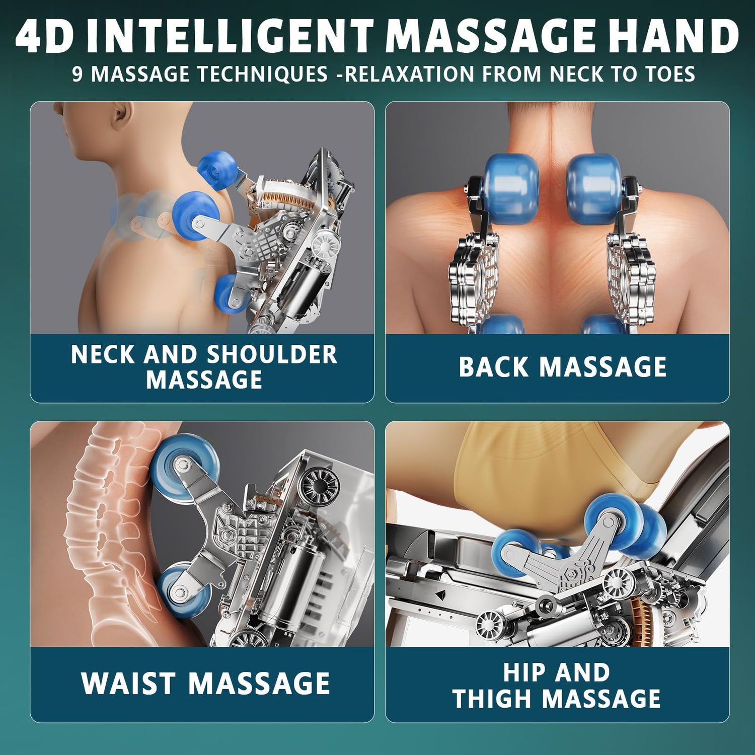 - 【Zero Gravity & Stretching Mode】The massage chair offers two zero gravity recline positions that provide a highly relaxing massage experience. You can easily adjust the recline angle by simply pressing a button. In the zero gravity position, your heart and knees are aligned, effectively reducing heart pressure and enhancing blood circulation. This promotes deep and relaxed breathing while also relieving pressure on your joints and spine.