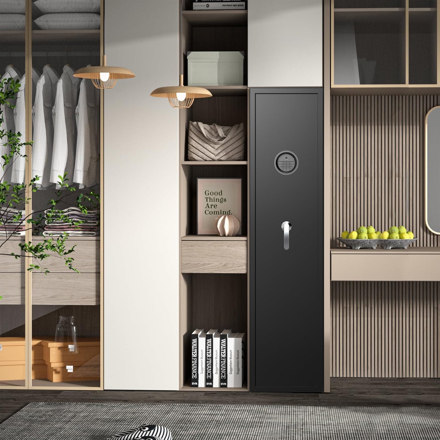 HEANVO 3-5 Gun Safes for Home Rifle and Pistols, Rifle Gun Safe for Shotguns, Quick Access Biometric Large Gun Cabinet Lock, Adjustable Rack Gun Safe