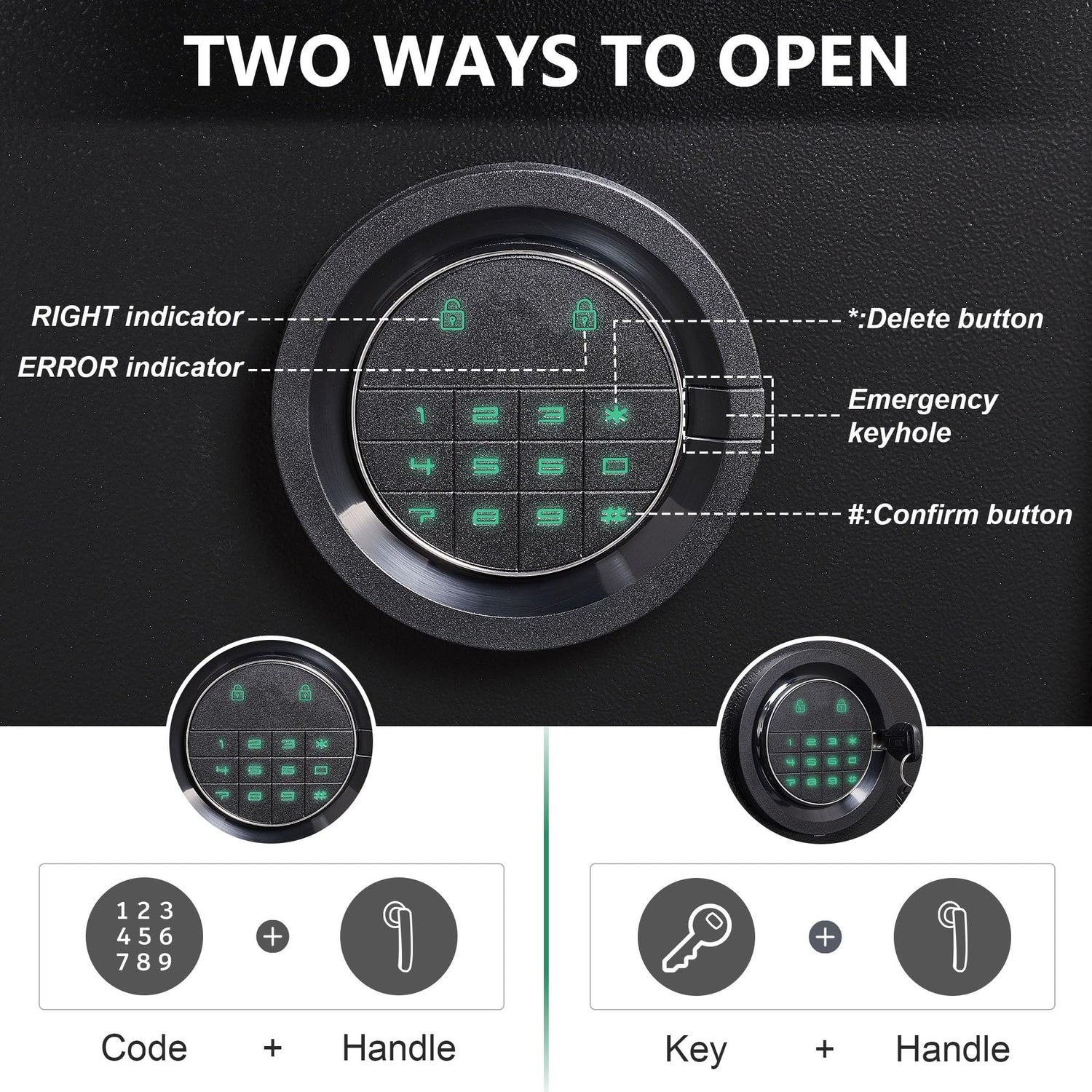 - Complete Accessories & Excellent Customer Service: Includes: 2 built-in lock cabinet keys, 2 keys, 5 screws,1 manual, 5 x Expansion screws, 1 x Emergency battry box, 1 x Instruction manual. We offer 24/7 customer service,If there are any problems with the gun safe, please feel free to contact us.