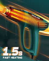 - ▶STRONG POWER – 1500W Craft heat gun help heats up to maximum temperature 1112℉ within 1.5 seconds, and its professional DC copper motor can guarantee more stable operation.