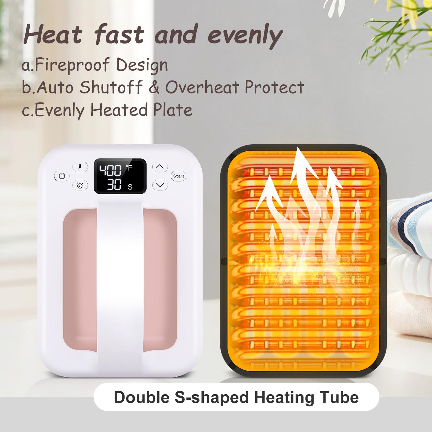 Heat Press Small Heat Press Machine for Heating Transfer, 7 × 5 inch Portable Easy Press Mini Heat Press for DIY Christmas Gift,T Shirts, Hats, Bags.etc(Pink)