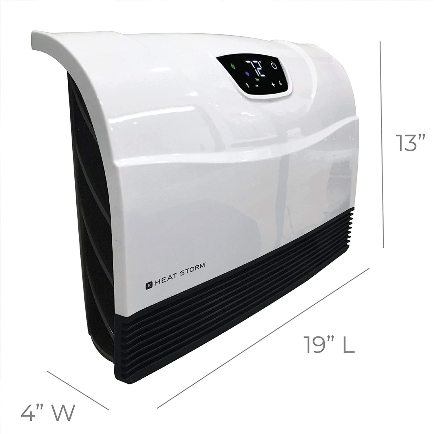 Details: The Heat Storm Phoenix 1500 Watt, Wi-Fi enabled, infrared wall heater is the perfect heating solution for any bathroom, bedroom, office, or small room where floor space is limited. It's built in Wi-Fi lets you control it from anywhere and you can even set your own custom heating schedules for the ultimate in convenience and energy efficiency. Easily connects to Wi-Fi via one-touch Bluetooth connect. At 1500 watts, this heater will easily heat up your room and will not trip your circuit breaker. It's extremely easy to mount it onto your wall and plugs into any regular household outlet. Its digital thermostat allows you to select your desired room temperature. Child lock mode makes sure your little ones cannot adjust the settings. Screen brightness control allows you to dim the display for sensitive sleepers. This heater is safe to touch, even the grill, making it an excellent choice for anyone, even those with pets or kids. This heater has three power modes; 1,500-Watts full, half power 750 watts and Eco mode automatically chooses between half and full power. The heater contains our Patented Heat Exchanger with HMS Technology that allows maximum heat efficiency from the infrared quartz bulbs without any heat loss from the heater.