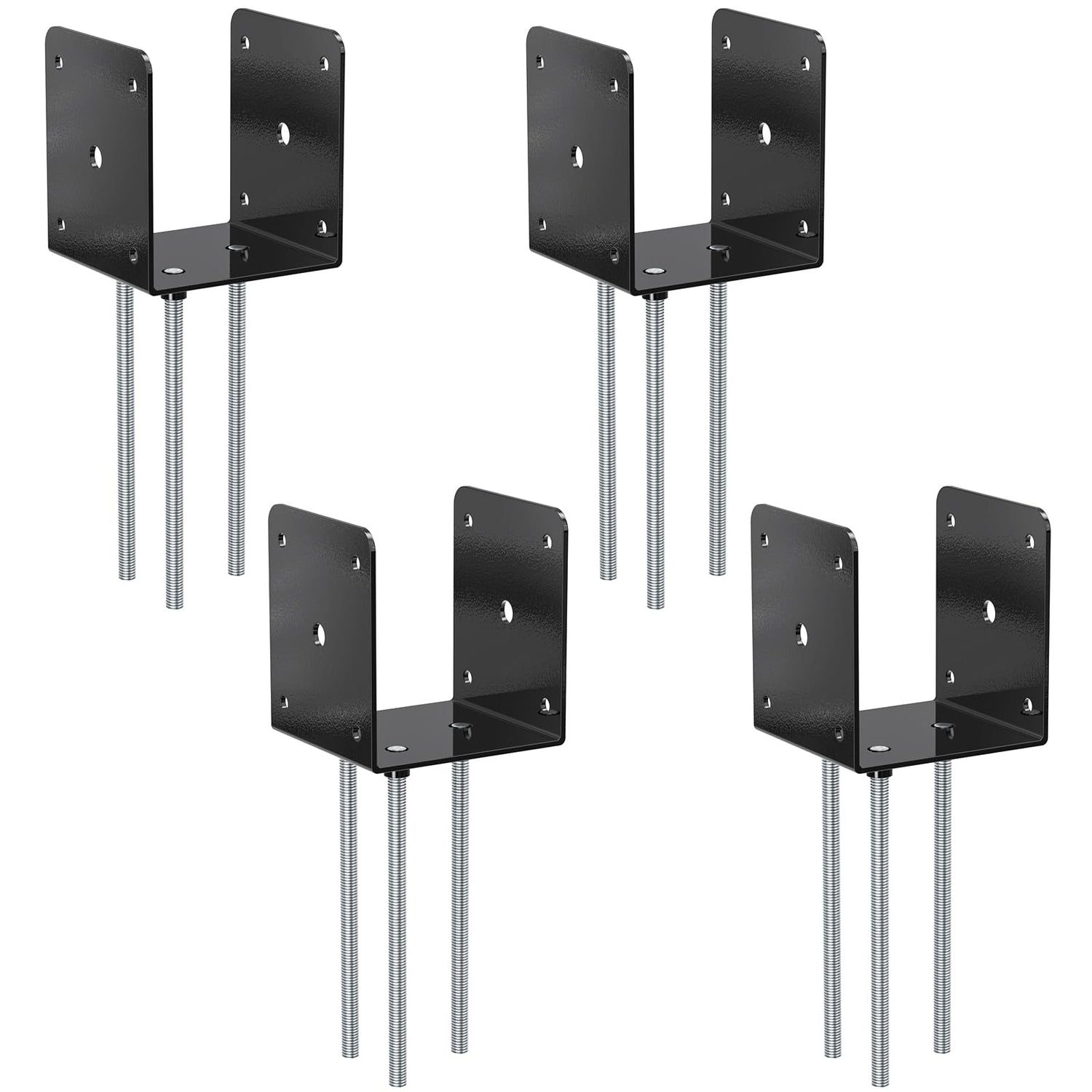Heavy Duty 4x4 Concrete Post Base Anchor, U Shape Fence Post Spikes for Concrete 4x4 Post Base Anchor Metal Black Powder Coated (4 pcs)