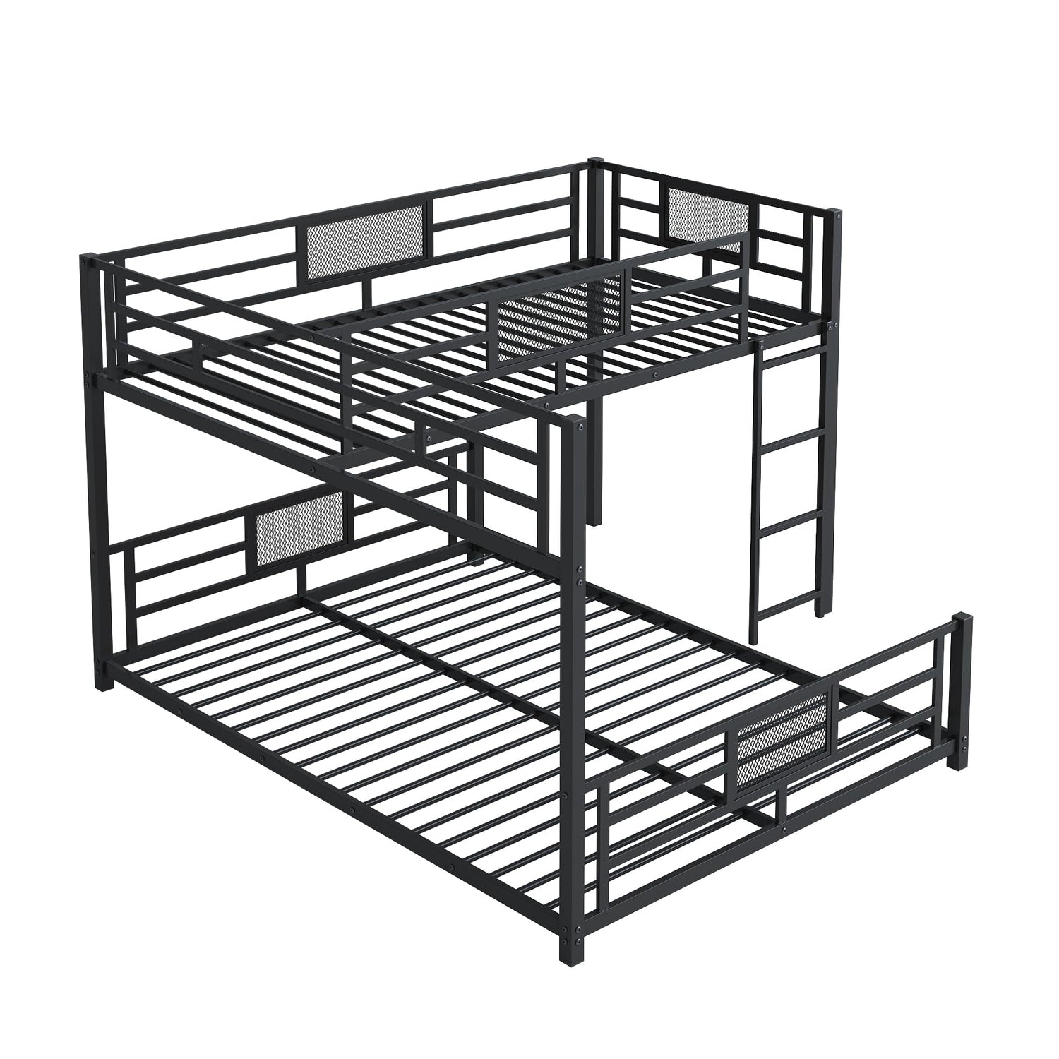 Heavy Duty Bunk Beds Twin Over Full Size, L-Shaped Bunk Bed with Full Length Guardrail and Ladder, No Box Spring Needed, Black Bunk Bed Twin Over Full