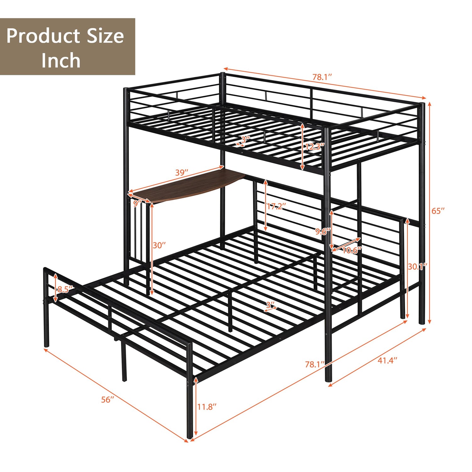 • đŸ„‡đŸ„‡ 【Heavy Duty Bunk Beds Twin over Full】This bunk beds with desk constructed of high- quality MDF and heavy duty steel with anti-rust powder coating, the twin over full bunk bed provides great support. Utilize the heavy duty screws to tightly fix each part for wobble-resistant sturdiness. The sturdy built-in side ladder makes it easy for child to climb up and down, and the widened legs that made of steel can add strength and durability. Weight capacity: 250LBS/350LBS(Upper Bed/Bottom Bed)